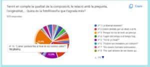 | Nom alumna | Títol de la fotofilosofia | nº vots | % |