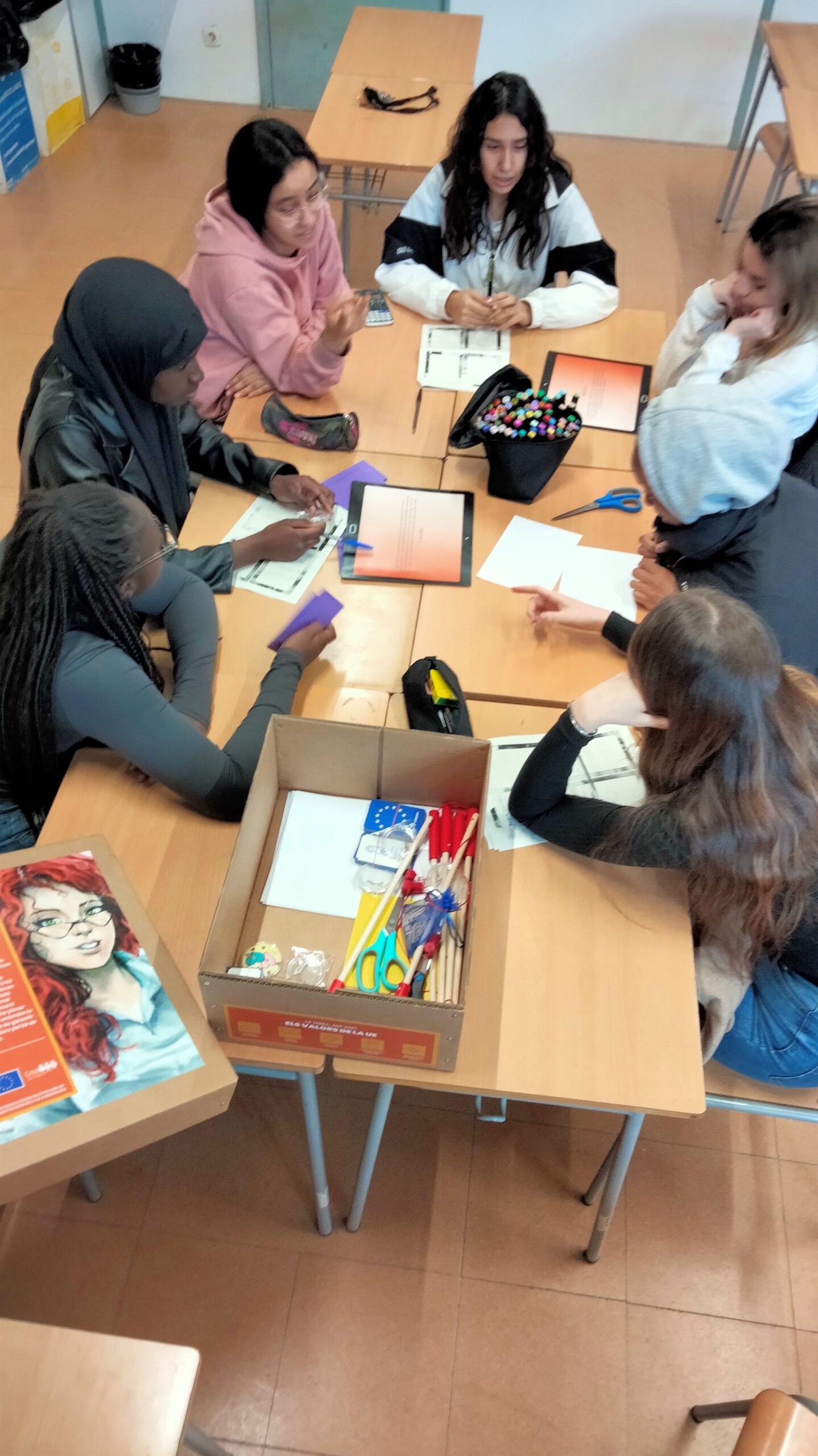 Les capses d’aprenentatge s’estan treballant amb l’alumnat que en aquest curs escolar 2023-2024 són ambaixadors del Parlament Europeu. Són nois i noies que cursen diferents matèries i diferents nivells.