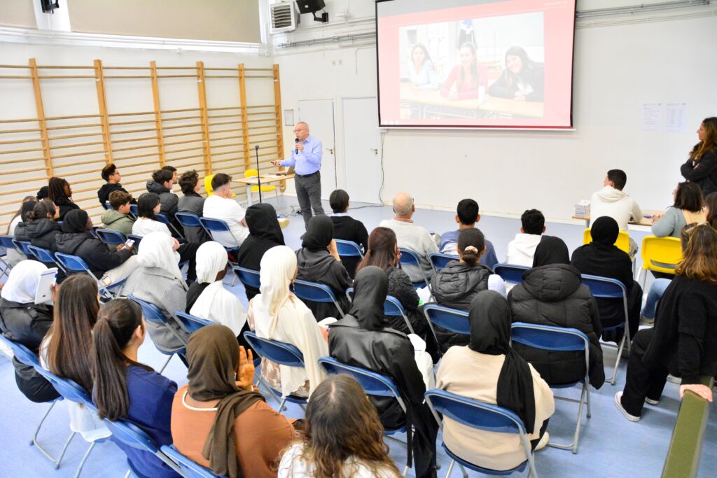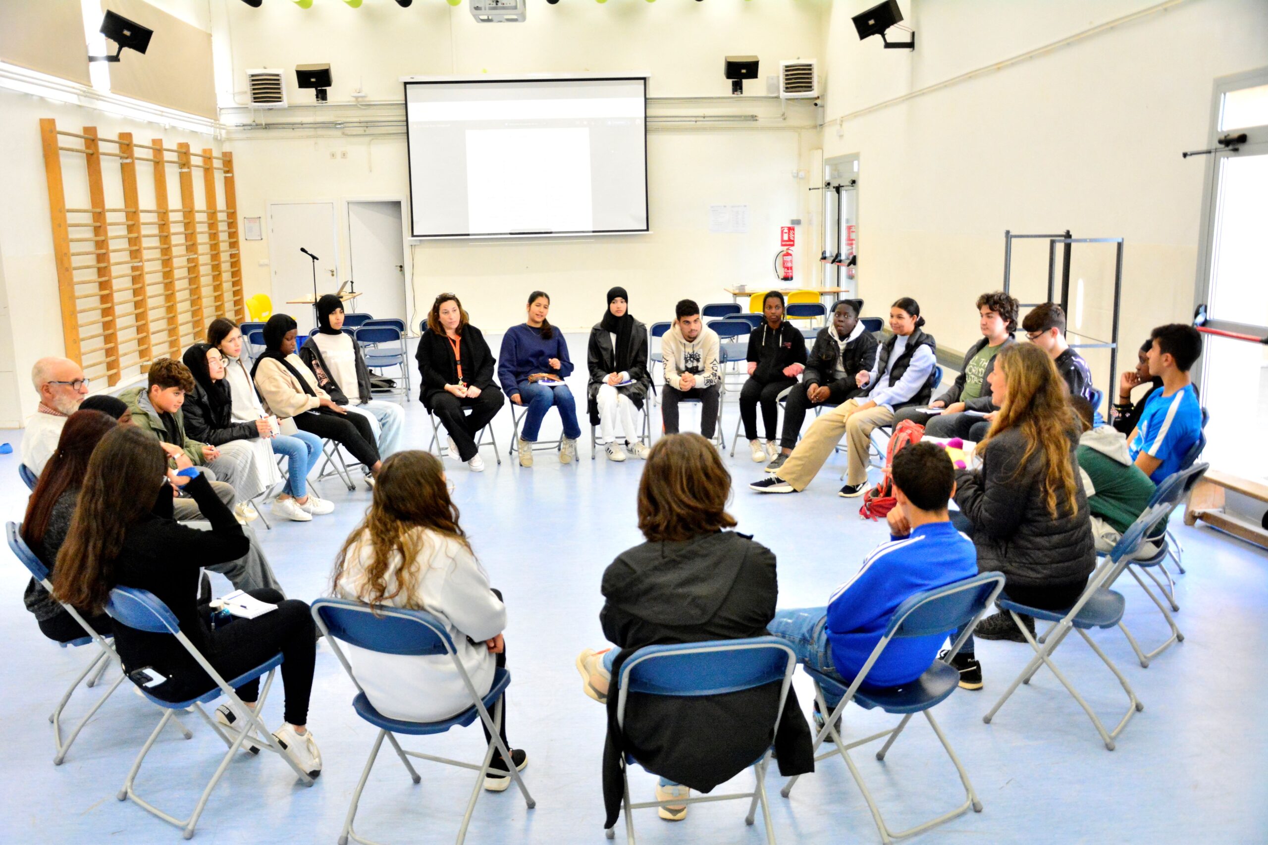 La Jornada es va dur a terme amb una activitat de caràcter acadèmic i formatiu al gimnàs del centre i a la biblioteca, amb un pla que es pot veure en la presentació de l’esdeveniment. Cal dir que -després de la pandèmia Covid-19- ha estat el primer Global Meeting de delegats i subdelegats de classe, i ha resultat un experiment molt enriquidor. Podem veure un Mentimeter que es va fer durant la sessió. Hi van participar el 91,5% dels representants de l’ESO i una mica més del 25% dels de la postobligatòria (cal dir que per a alguns era un període d’exàmens trimestrals i per a altres hi havia classe).
