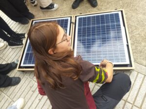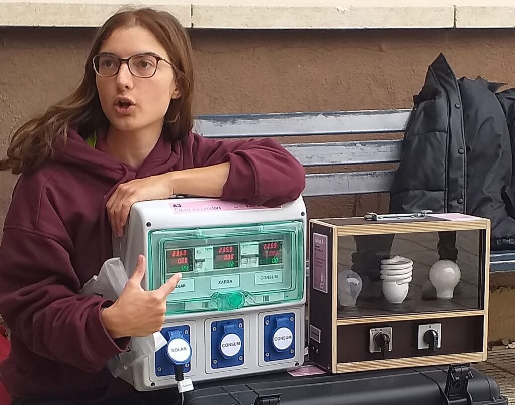 Aquest any, l’activitat ha combinat una part teòrica i una part pràctica que ha permès als alumnes experimentar de primera mà amb l’energia solar. Durant la sessió pràctica, els participants van posar en marxa una placa solar portàtil, utilitzant-la per produir electricitat i encendre diferents sistemes d’enllumenat de diverses potències (W). Aquesta experiència va ajudar a visualitzar de manera molt clara la relació entre la potència de les fonts de llum i el consum energètic que representen.