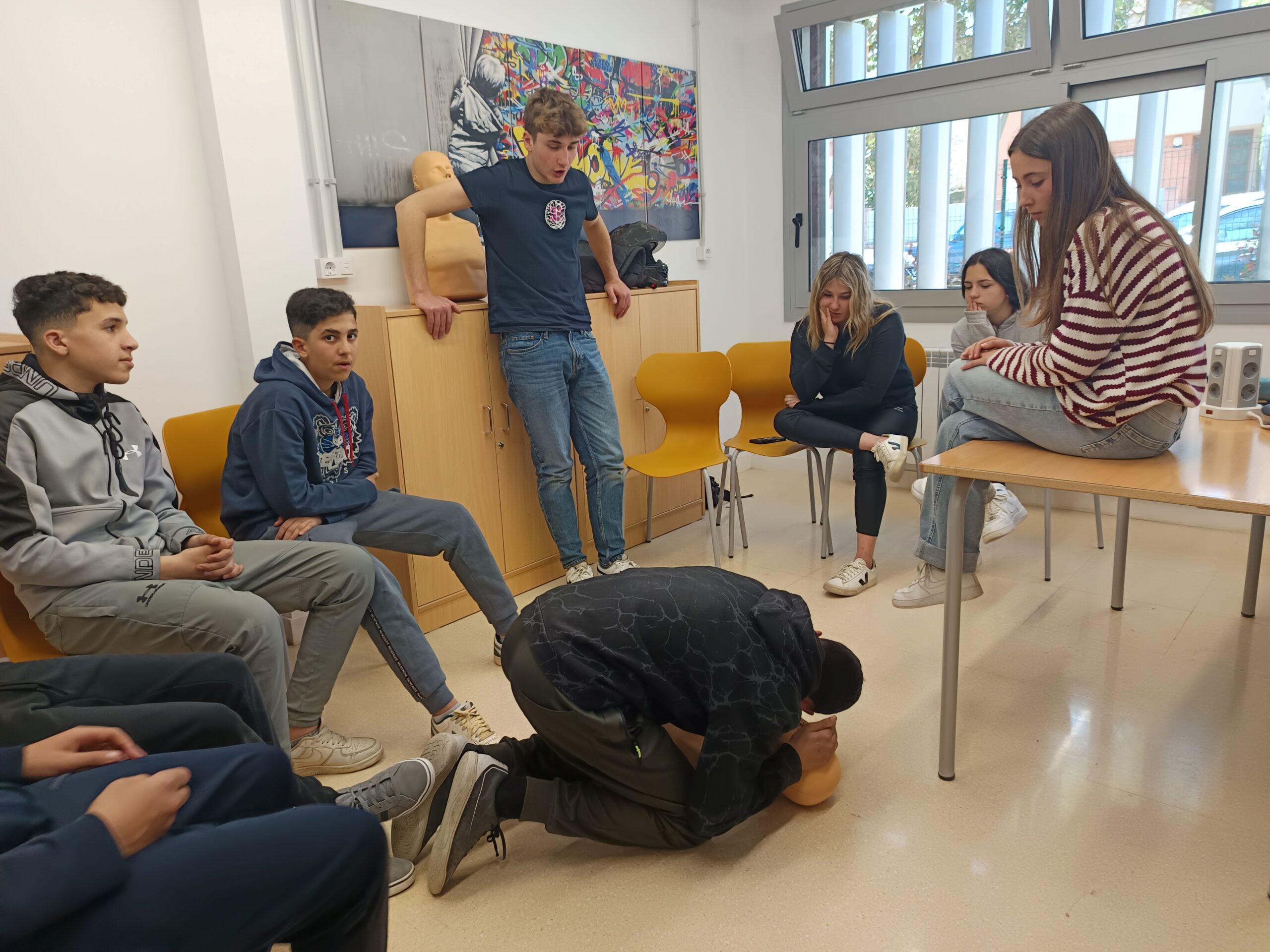 L’última setmana de març, durant tot un matí, alumnes de segon del cicle formatiu d’esports, GUIAMN, van impartir un taller de Suport Vital Bàsic (SVB) a l’alumnat de tercer d’ESO de 90 minuts. Va ser un taller totalment pràctic en el qual l’alumnat d’ESO va poder aprendre i practicar el protocol bàsic d’actuació davant d’un cas de víctima inconscient i que no respira.