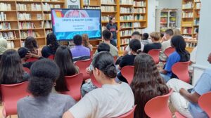 Després d’un breu ice-breaking per trencar el gel i generar complicitats entre els assistents, la trobada va comptar amb una ponència inspiradora a càrrec d’Anna Jòdar, exjugadora professional de bàsquet i actual preparadora física de l’Uni Girona de bàsquet, a més de docent a l’EUSES de la UdG. Sota el títol “Sports and Healthy Living”, Anna Jòdar va fer un recorregut per la seva trajectòria personal i professional, posant èmfasi en els beneficis de l’activitat física per a tothom, des de l’alta competició fins a l’esport quotidià que practiquen estudiants i persones no especialistes. L’exposició, carregada de passió i autenticitat, va generar moltes preguntes i intervencions per part dels delegats, que van poder compartir reflexions i inquietuds en un espai de diàleg molt enriquidor.