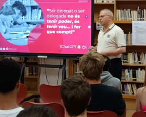 Tot seguit, l’activitat va continuar amb una dinàmica participativa amb Mentimeter, un berenar que va reforçar el sentiment de grup i col·laboració, i un divertit i competitiu concurs Kahoot, amb premis valuosos per als delegats i delegades que van demostrar un coneixement més profund del funcionament, valors i organització de l’Institut.