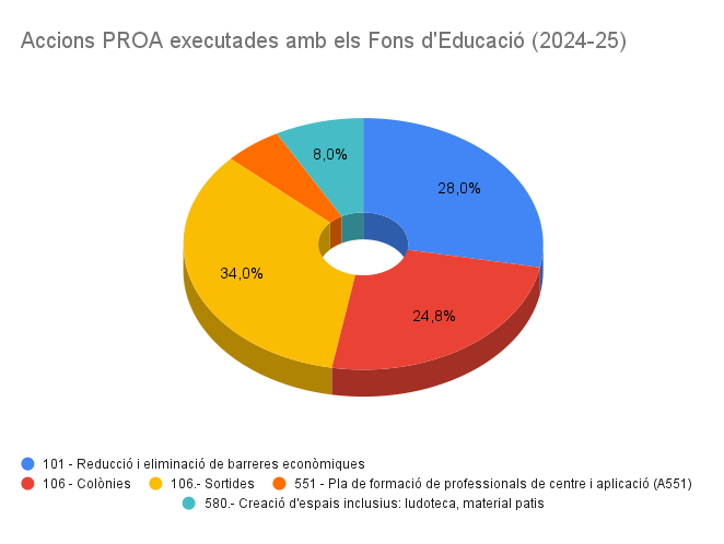 Al nostre Institut tenim un “Pla Estratègic de Millora” (PEM) que s’ha anat aplicant els darrers anys. La distribució i l’aplicació executiva d’aquests dels recursos es fa des de l’Equip directiu tenint en compte la “Comissió PROA” del centre -on hi ha representants també del professorat, del PAE, de les famílies i de l’alumnat– i les peticions i necessitats que sol·liciten els diferents nivells acadèmics que hi tenen accés, com els Departaments didàctics, Coordinacions, Comissions i Equips de millora. Tota l’actuació es du a terme d’acord amb un PEM, que contemplava el curs 23-24 d’una quinzena de diverses “Activitats palanca” operatives aprovades, entre les que podem esmentar, només a títol d’exemple, les següents: Reducció i eliminació de barreres econòmiques (101), Colònies/Sortides (106), Mentoria Social (gestionada per l’Ajuntament de Salt -207), Reforç per a la millora i èxit educatiu (230), Dinamització de biblioteques escolars (233), Mirades emocionals per a la millora de l’aprenentatge, STEAM /TIC (407), Pla d’acollida de professorat (550), Pla de formació de centre (551), Creació d’espais inclusius (580).