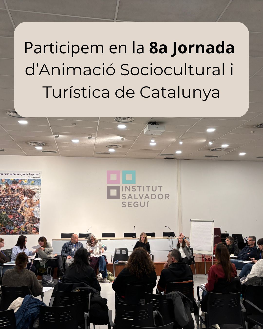 L’esdeveniment va reunir més de 150 representants de 9 centres educatius d’arreu del país, entre ells el nostre centre, amb la voluntat de compartir experiències, projectes i reflexions al voltant de l’Animació Sociocultural i Turística com a eina de transformació i inclusió social.