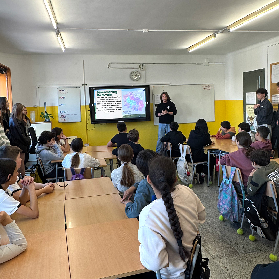 Els estudiants van preparar i exposar en anglès una presentació adreçada als alumnes de 6è de primària del Col·legi Verd, en què van analitzar la situació dels ocells a Girona i a Gostynin, tot posant en relleu els impactes del canvi climàtic i proposant accions per contribuir a la seva conservació.