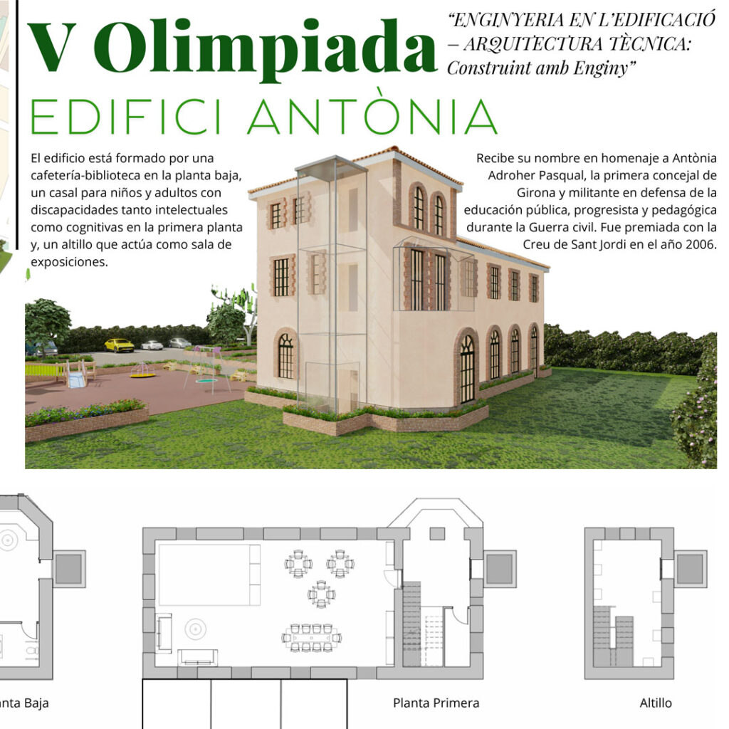 Les alumnes Alba Ortúzar Cañete, Sabah El Hamdaouy Zaid, Sheymaà Ospitia Hernández, Judit Vilà Sarquella i Ainara Vares Montero, del Cicle Formatiu de Grau Superior de Projectes d’Edificació, han participat en la V Olimpíada “Enginyeria en Edificació” – Construint amb Enginy, organitzada per la Conferència de Directors d’Arquitectura Tècnica i Enginyeria d’Edificació (CODATIE) amb la col·laboració de les universitats catalanes (UdG, UdL i UPC) que imparteixen aquest grau.