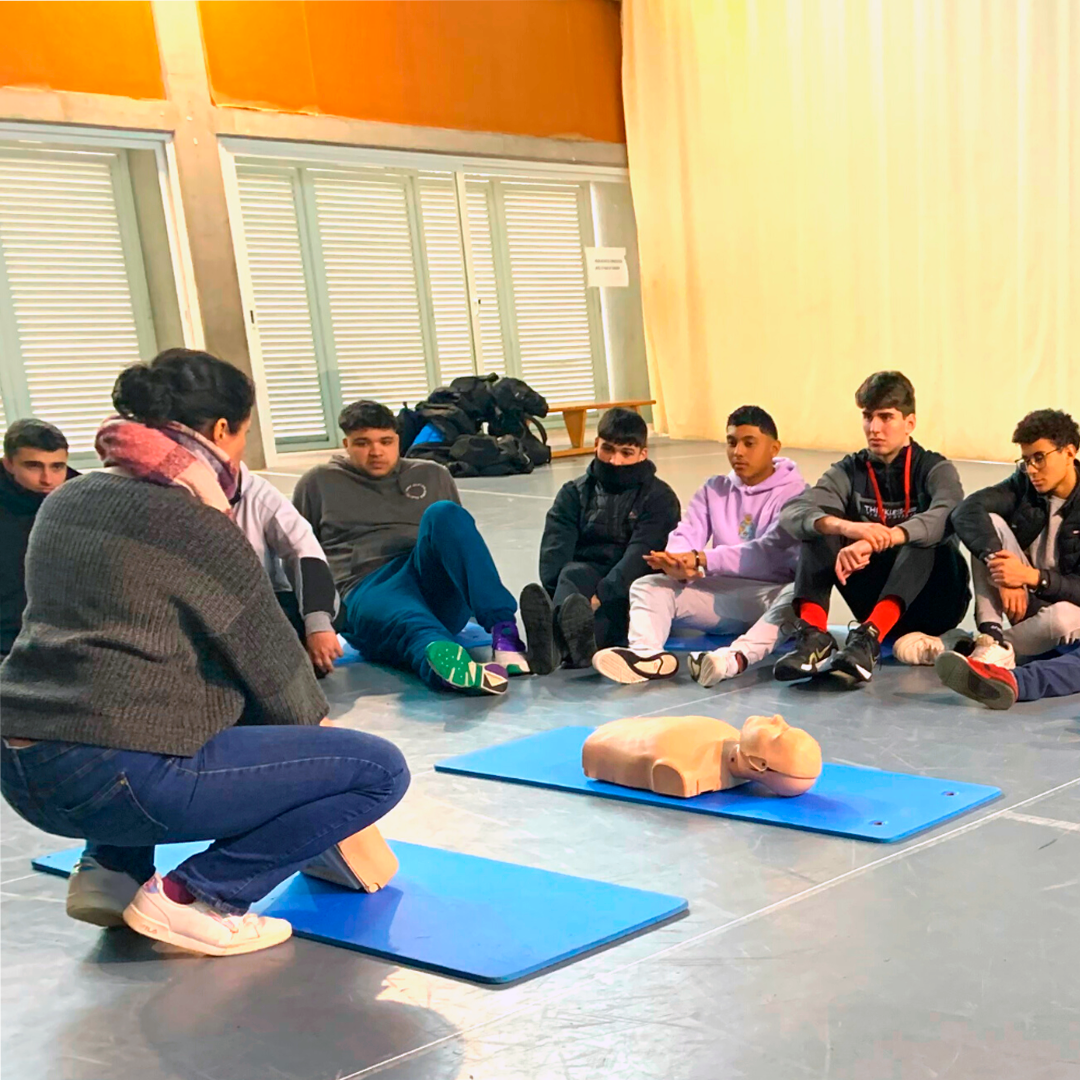 Els i les alumnes cicles formatius de grau mitjà de les famílies d’Instal.lació i Manteniment, de Fabricació Mecànica i de Comerç i Màrqueting han realitzat les pràctiques de primers auxilis de la mà d’una infermera del CAP de Can Gibert del Pla que treballa en els programes de Salut i Escola.