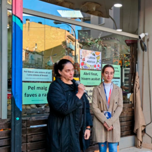 A partir d’aquí, se’ls va suggerir el repte de portar la campanya fora de l’aula, que ha consistit a traslladar alguns dels rètols exposats al centre a l’aparador d’una botiga.