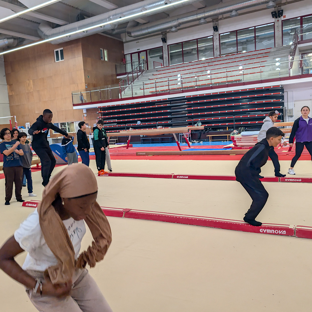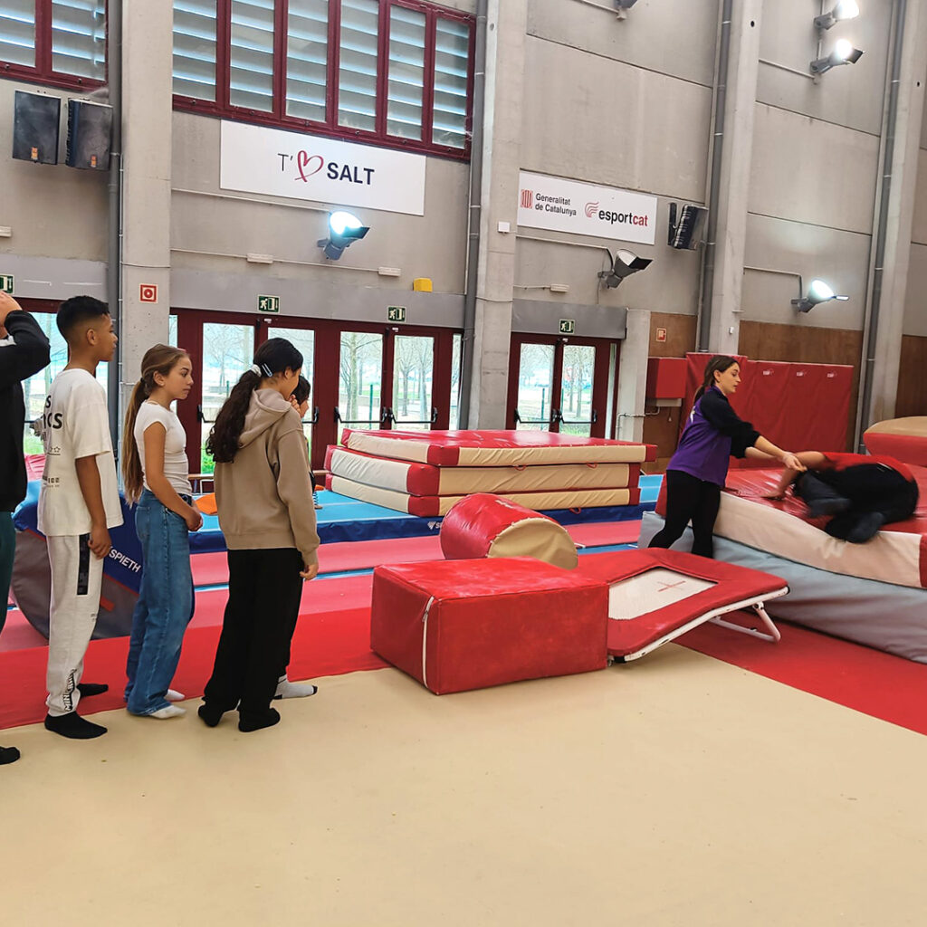 Durant la sessió van poder provar elements propis de la gimnàstica i treballar habilitats com l’equilibri, la coordinació i la força d’una manera divertida i dinàmica.