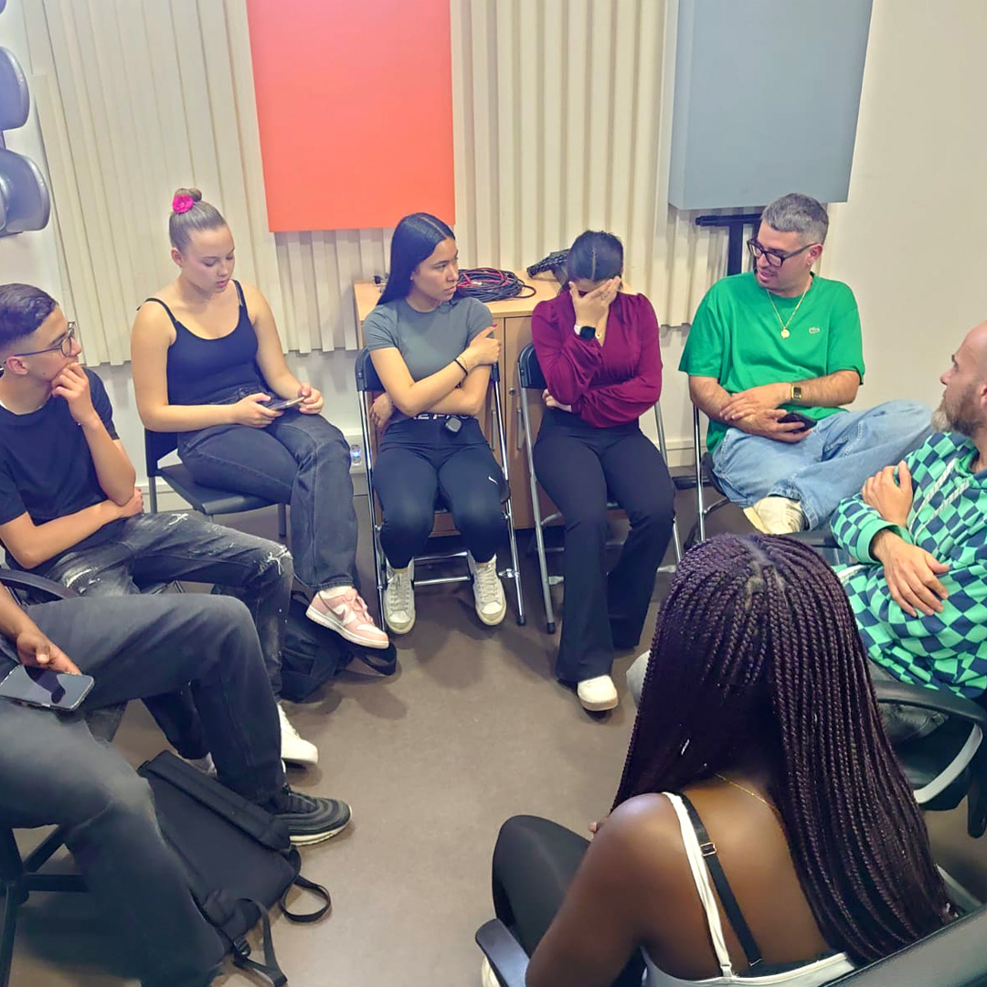 La lletra del rap ha estat elaborada a classe amb la col·laboració de la rapera Mera, veïna del barri de Santa Eugènia, qui ha guiat l’alumnat en tot el procés creatiu: des de la reflexió inicial fins a la construcció de rimes i ritmes. Després d’unes setmanes de treball i assaig, els grups han gravat als estudis de La Marfà, gaudint d’una gravació professional de la seva composició.