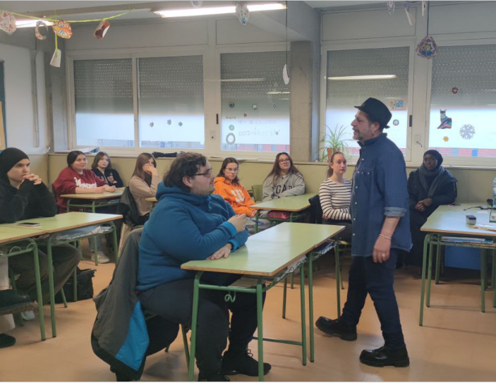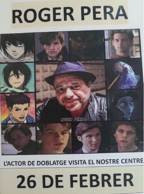 En Roger Pera ens ha explicat com es fa un doblatge, des de la traducció, l’adaptació, la presa i el repartiment. L’actor, fill de Joan Pera, en fa des que tenia 8 anys. Tant l’alumnat d’ESO com el de BATXILLERAT i CICLES han pogut fer d’actors i actrius a través d’un text inventat.