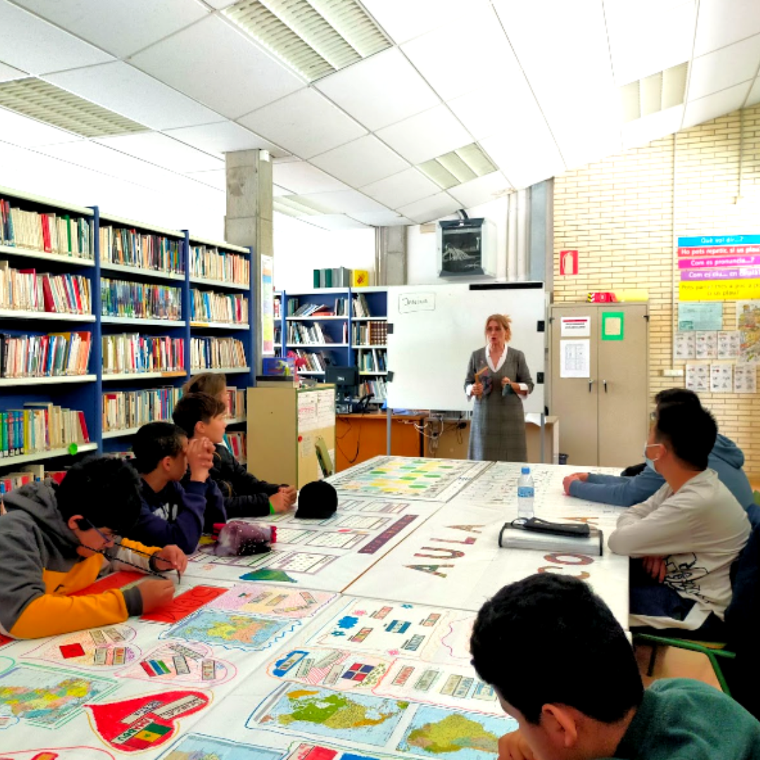 Janina Aixarch, professora recentment jubilada del centre, ha tornat a les aules i ha explicat als i les alumnes una faula escrita per ella mateixa. Ha estat una visita molt especial.