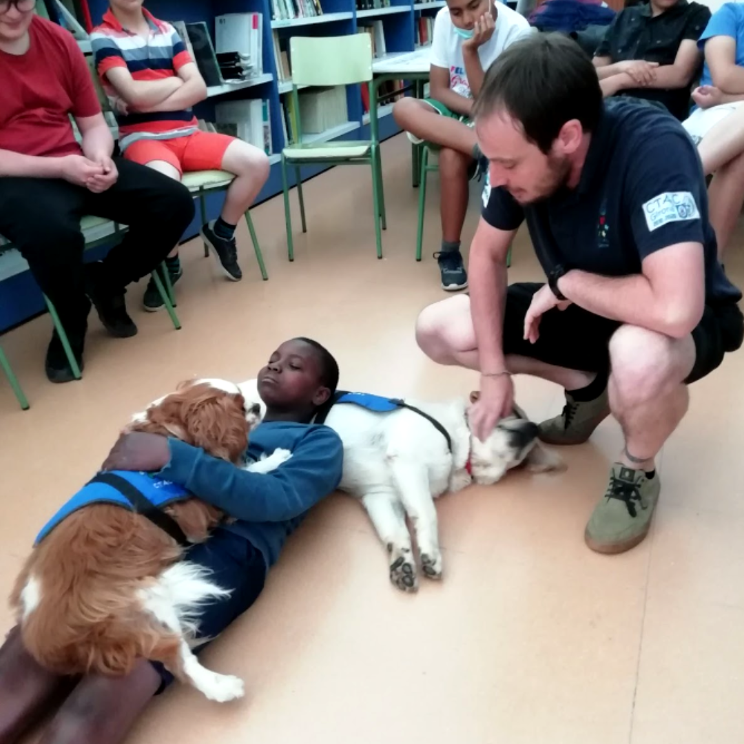 Els participants han establert un ambient de confiança amb els gossos, previ a la divulgació i pràctica de gestos per a interccionar.