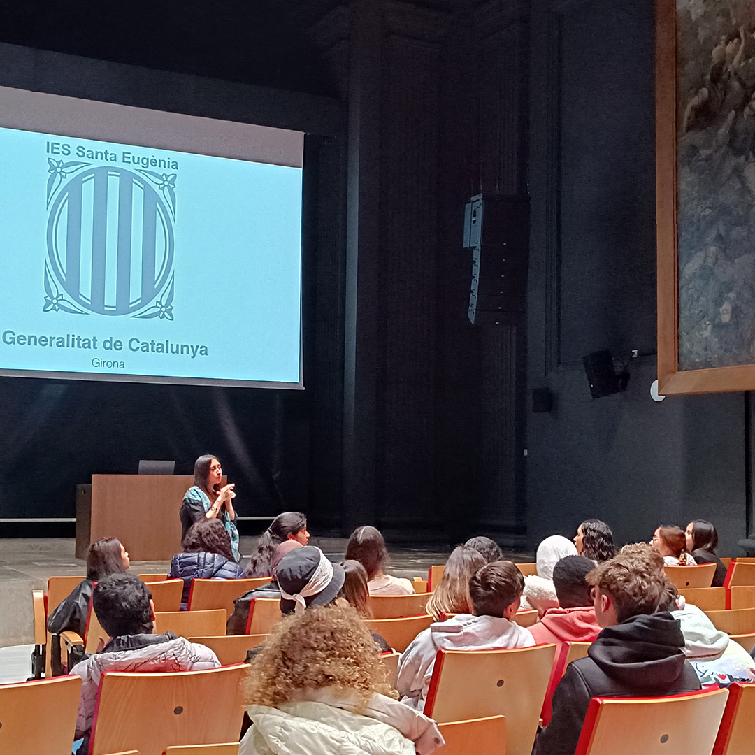 Les responsables de la visita han explicat a l’alumnat el model d’organització de la Generalitat a la demarcació, així com el funcionament de l’OAC i de l’Arxiu. Les explicacions han tingut lloc a l’auditori Josep Irla.