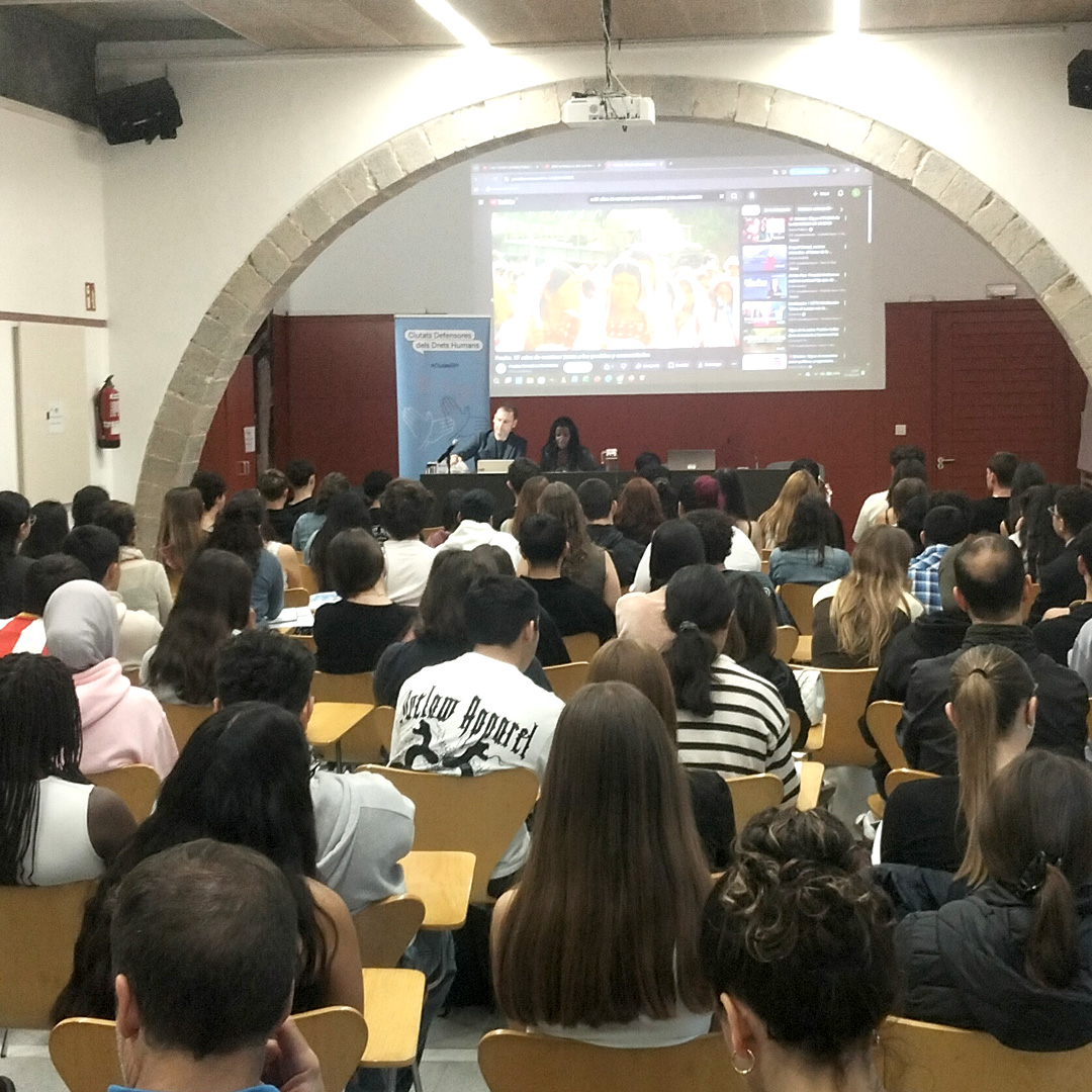 L’alumnat de 1r de batxillerat del nostre institut Santa Eugènia ha assistit aquest divendres 17 d’abril a una xerrada taller sobre el projecte de ciutats defensores dels drets humans. Conjuntament amb la regidora d’igualtat i justícia social, Amy Sabaly Balder, Ignasi Rodríguez, enginyer químic relacionat amb temes ambientals i de cooperació, la Natàlia González, activista neuropsicològica colombiana i l’activista mexicà Ruben Moreno, s’ha fet una xerrada de conscienciació sobre com aplicar justícia social.
