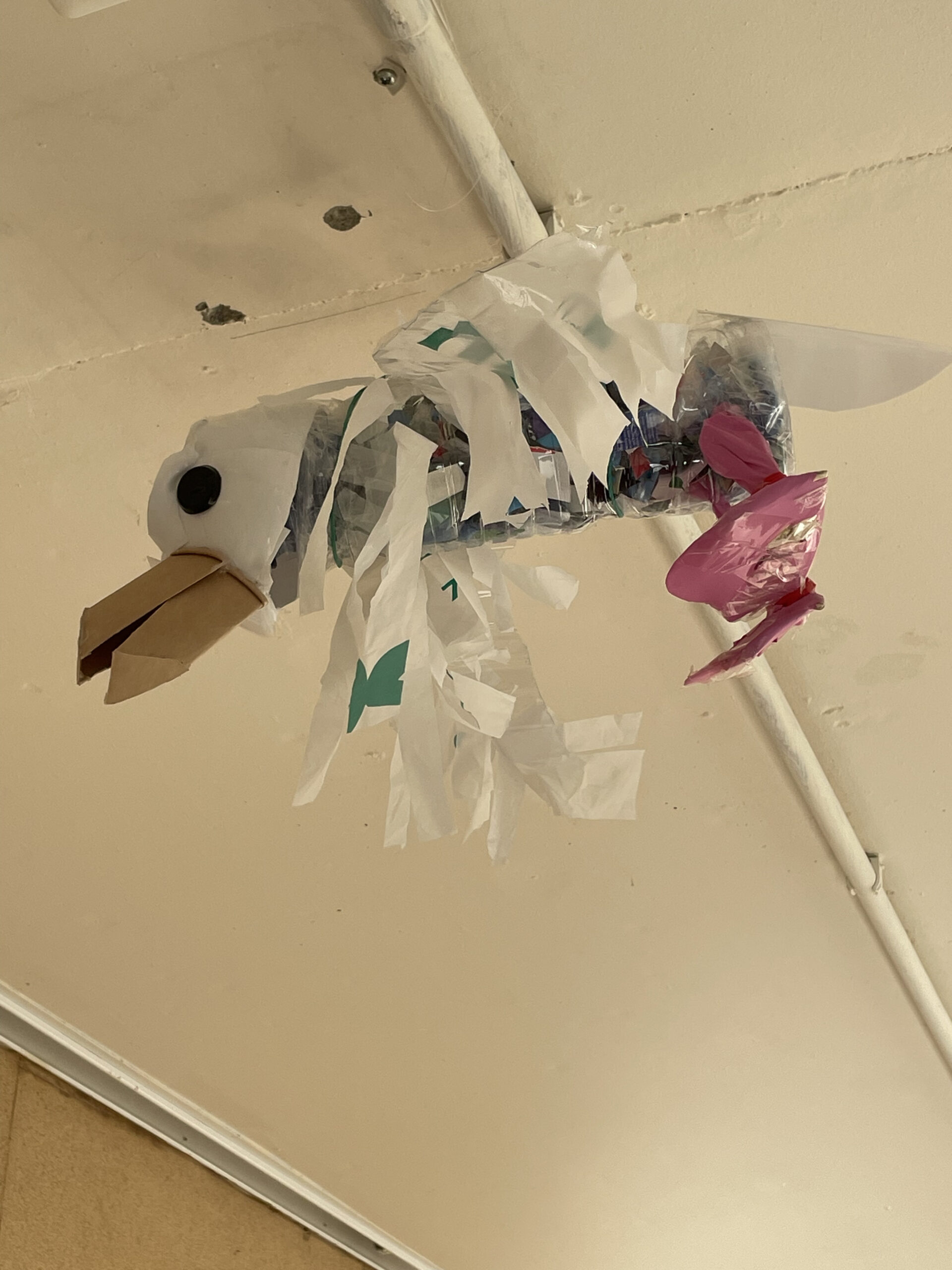 Des de l’assignatura d’ODS de 2n de Batxillerat, els alumnes han reflexionat al voltant de la contaminació per plàstics, una problemàtica que afecta notablement els ecosistemes marins però que també té una greu afectació en la salut humana. Per a denunciar aquesta situació, els alumnes han dedicat diverses sessions a informar-se sobre la problemàtica i han realitzat una exposició d’obres artístiques a partir de material reciclat.