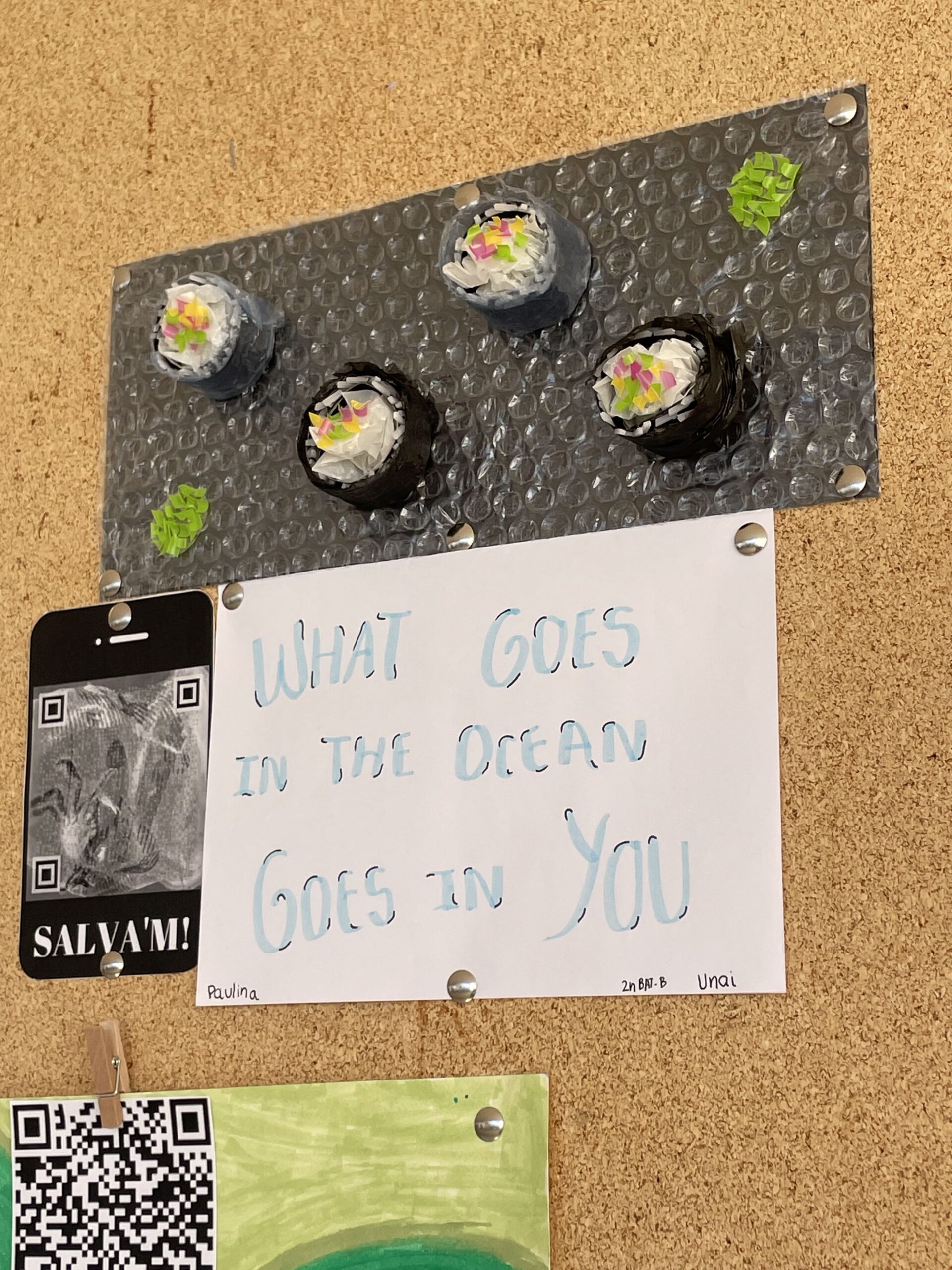 Les obres venen acompanyades d’un enllaç QR que redirigeix a un bloc personal on els alumnes hi expliquen la justificació de la seva obra, així com les seves reflexions i aprenentatges al voltant de la contaminació per plàstics i com ens afecta.