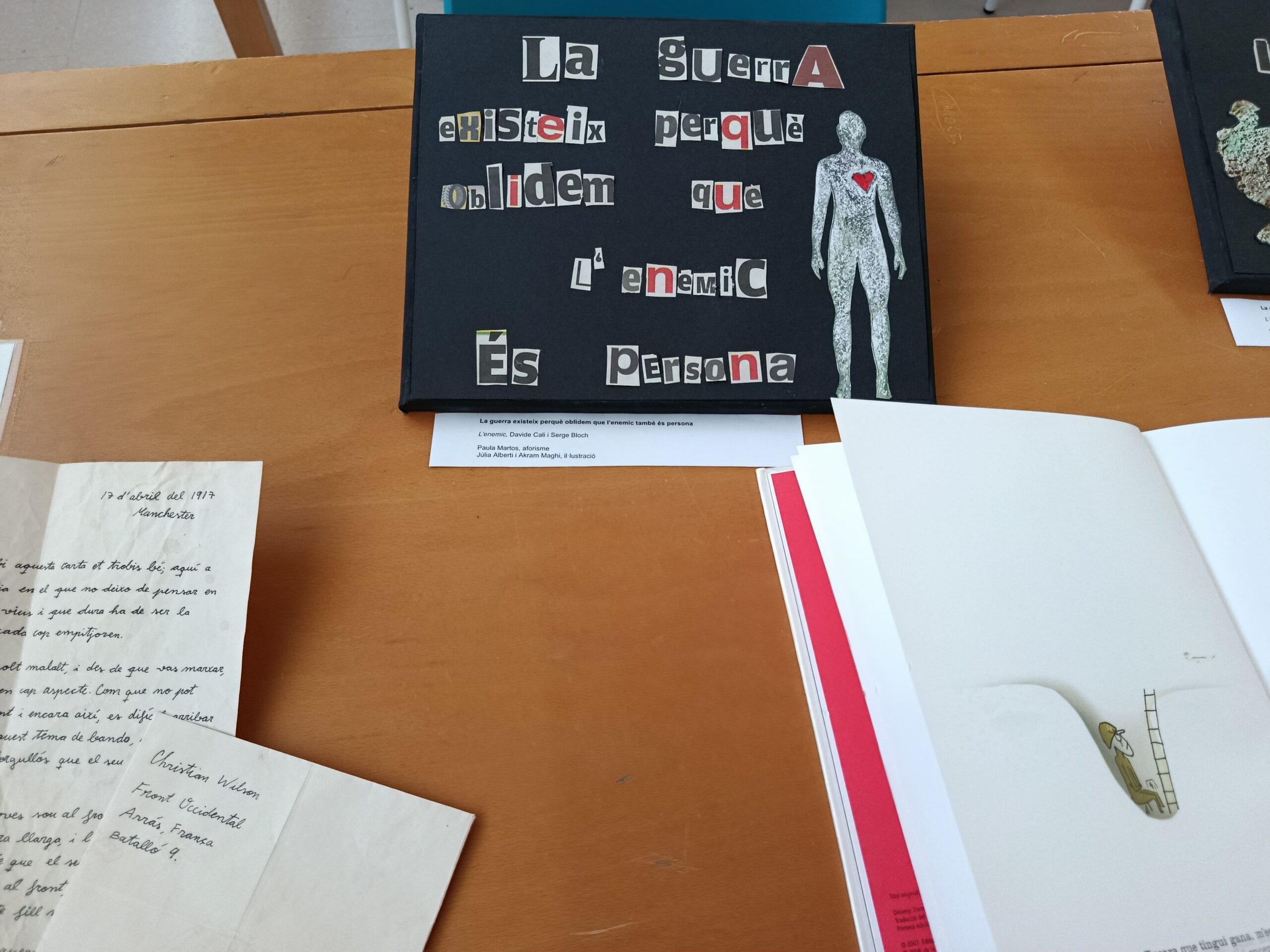L’alumnat de 4t d’ESO ha creat una proposta artística a partir de reflexions personals sobre els conflictes bèl·lics i els exilis del segle XX. El resultat és una mostra que combina història, art i filosofia a través de poesia visual i aforismes, convidant a la reflexió i al pensament crític.