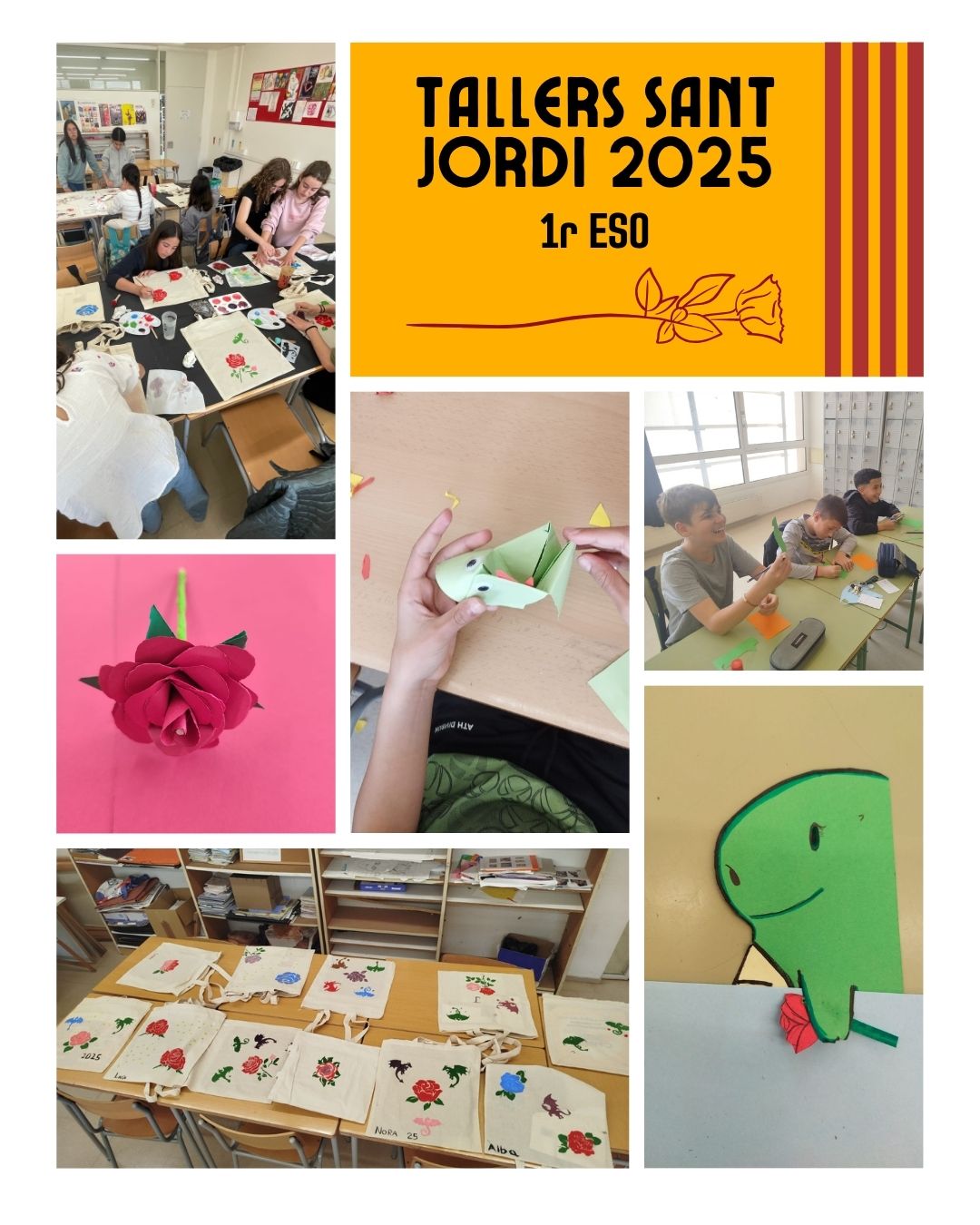 Per fer encara més especial la diada de Sant Jordi, el passat 23 d’abril, l’alumnat de 1r d’ESO va participar en diversos tallers creatius!