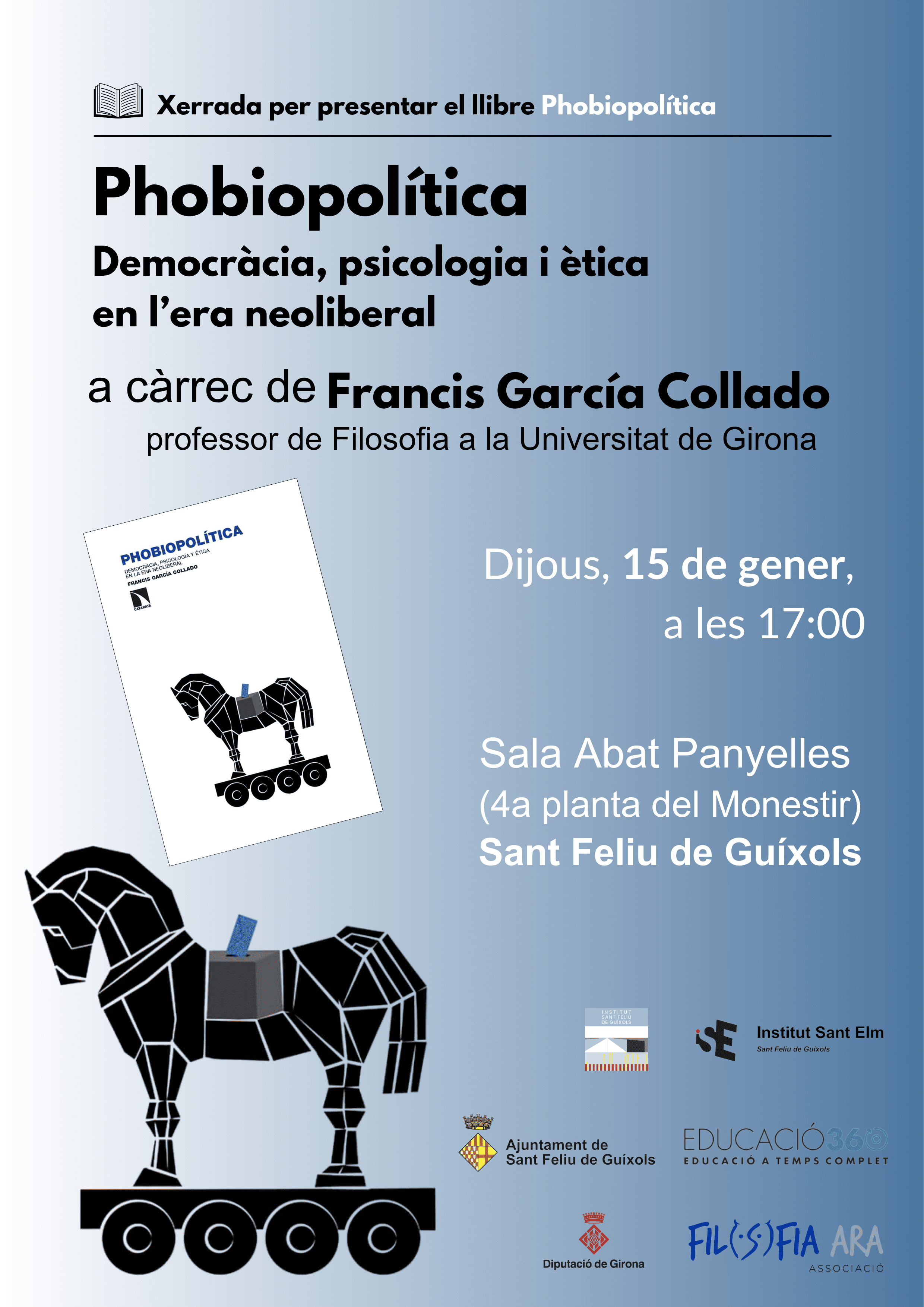L’autor, Francis Garcia Collado, és professor d’ètica i de psicologia de la UdG, i impartirà la xerrada dins del marc del cicle Filosofia a l’abast, organitzat per l’Associació Filosofia, Ara-.