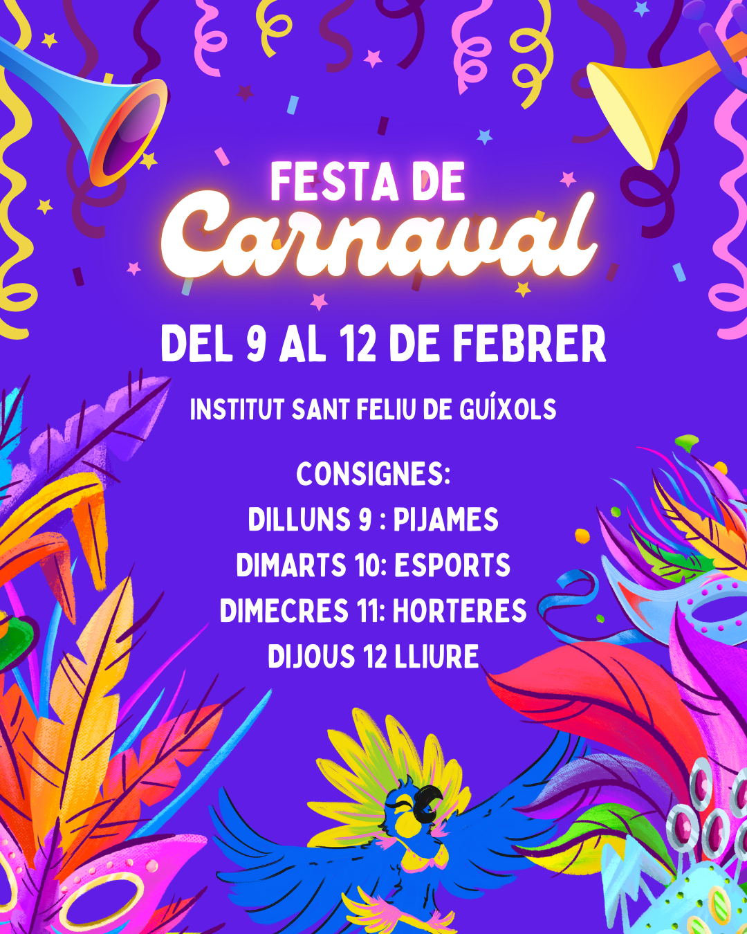Entre tots i totes farem una setmana plena de color, diversió i bon ambient. Bon Carnaval!