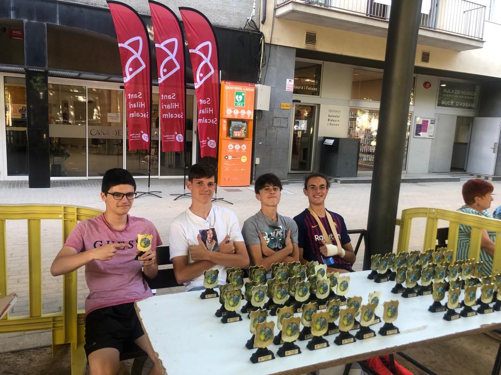 En Biel Recasens, en Roger Duran, en Jan Obiols i en Nil Carreras van donar suport tècnic a l’organització d’una de les proves més popular de la setmana: la milla urbana de Sant Hilari.