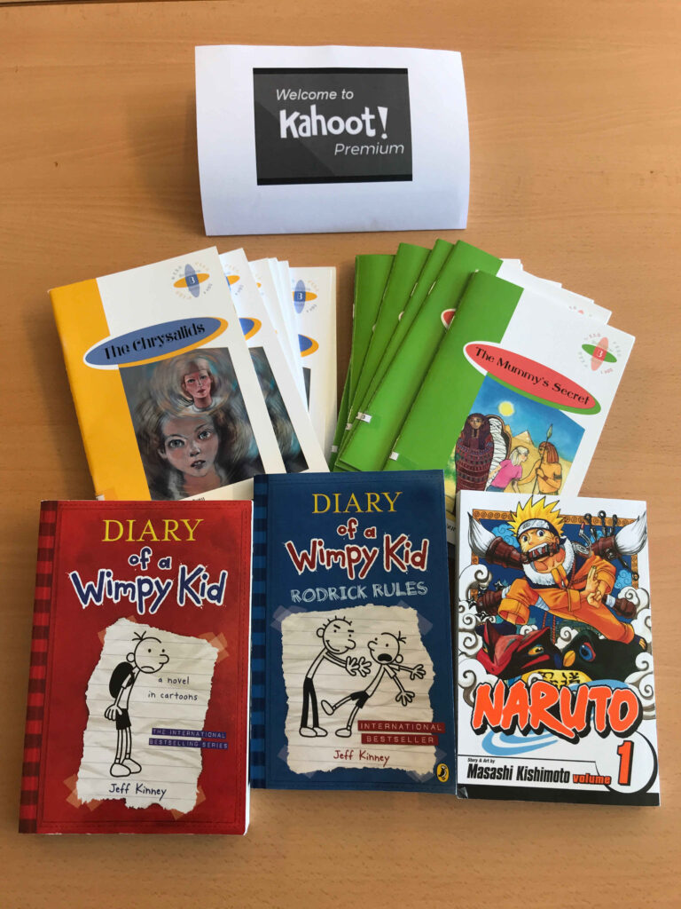 We are happy again to say that we have new material to learn English! Our students will increase their reading abilities, and our teachers will have a great new resource to enjoy learning. We must thank the Ajuntament of Sant Hilari, who has funded the acquisition of: 46 reading books: The Mummy’s secret, The Chrysalids. Three different books: Diary of a Wimpy kid, Diary of a Wimpy kid Rodrick rules and Naruto 1 and an annual Kahoot premium subscription. Thanks a lot.