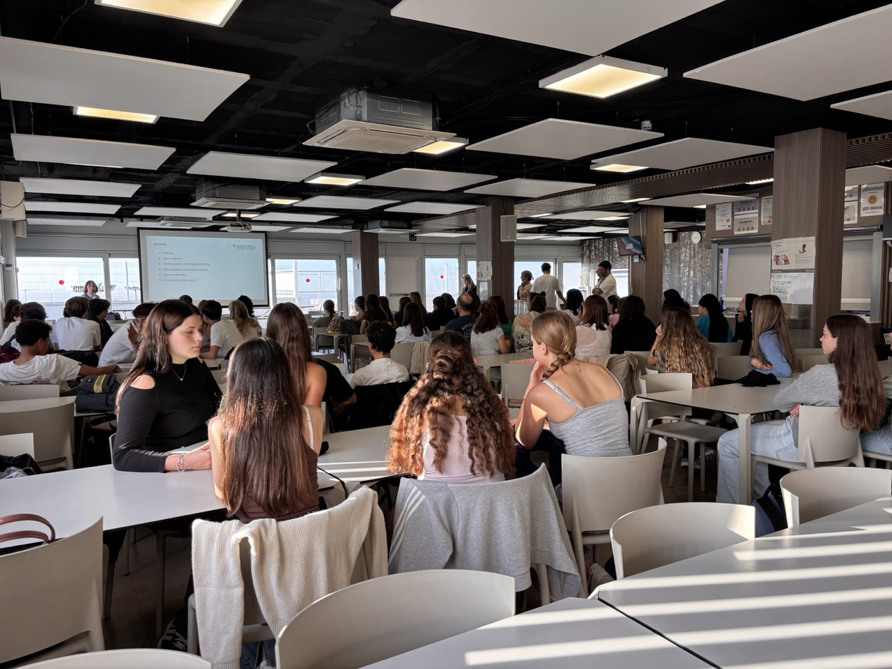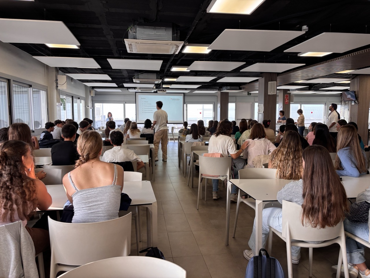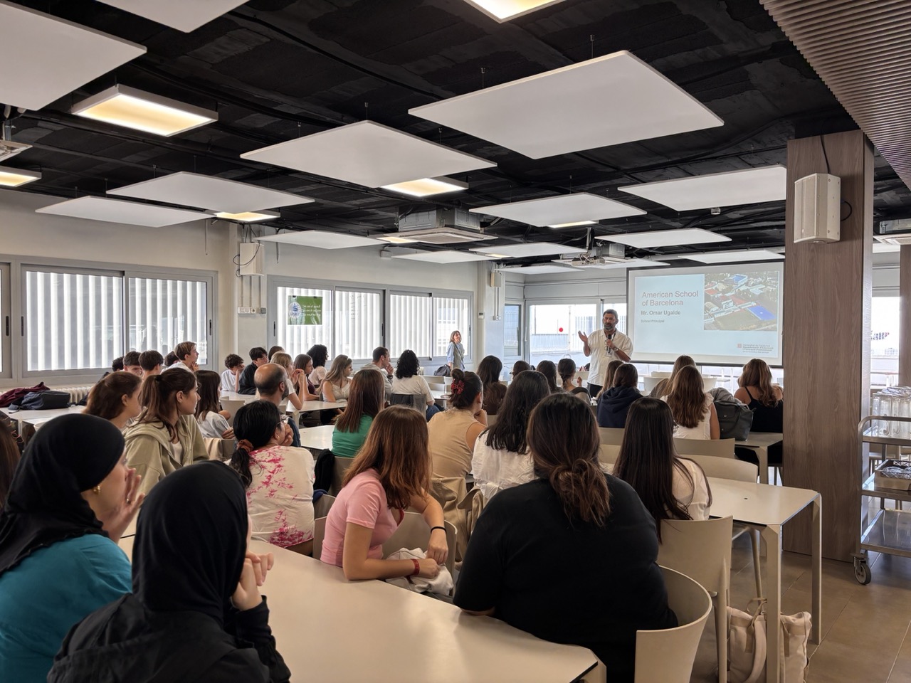 Dimecres passat vam fer la inauguració del projecte Sharing to Learn del curs 2025-2026 a l’American School Barcelona. En l’acte inicial, els nostres alumnes es reuneixen amb els mestres de les escoles, i coneixen els altres alumnes de l’ASB amb qui formaran equip. És una jornada de preparació per començar a fer de Language Assistants amb els petits de les escoles avui mateix. Estan tots molt il·lusionats! Podeu trobar més informació aquí. Podeu veure algunes imatges aquí sota: