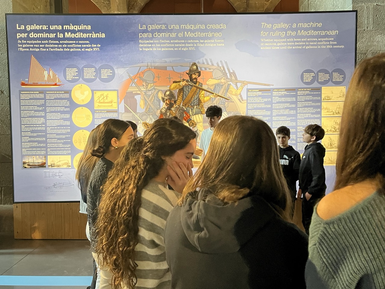 Els alumnes de 2n d’ESO han visitat aquest mes de febrer el Museu Marítim de Barcelona, al conjunt arquitectònic de les Drassanes Reials de Barcelona. Aquesta sortida forma part del contingut del 2n trimestre de la matèria de Ciències Socials (Edat Moderna). Tant l’activitat “Drassanes Reials” com l’explicació al planetari (“Explora el món”) han estat molt enriquidores, i els han permès endinsar-se encara més en l’època dels grans descobriments geogràfics. Per acabar, han pogut realitzar una visita autoguiada pel museu en petits grups.