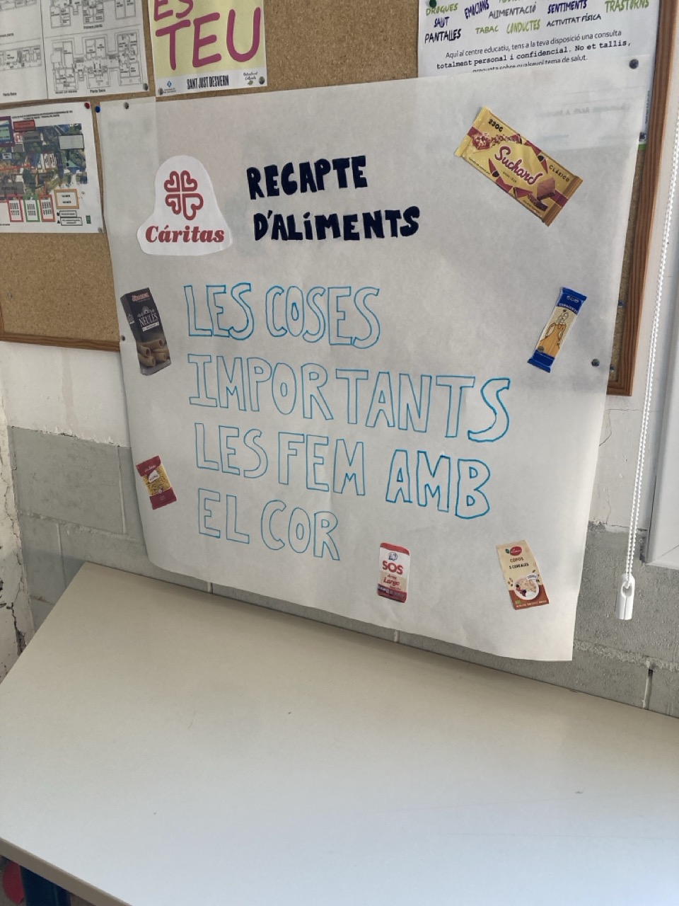 Podeu dipositar les vostres aportacions als punts de recollida del centre al costat de la consergeria de l’edifici nou i del vell.