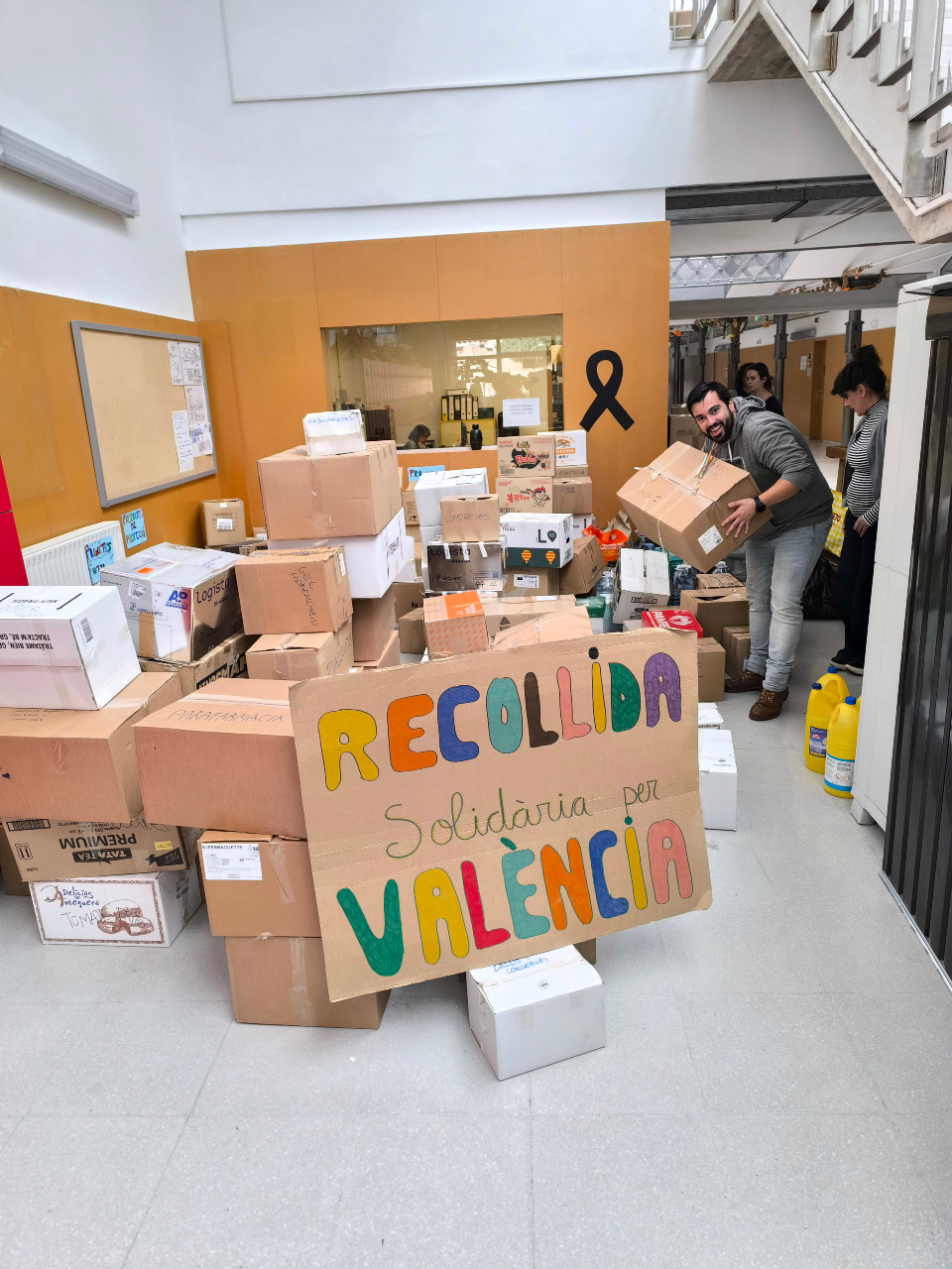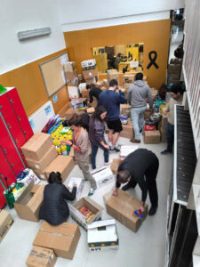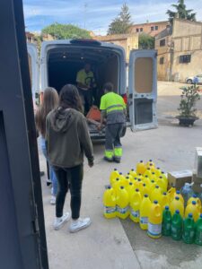 Aquest matí, els nostres profes valencians han carregat els seus cotxes per marxar directament cap a València tot just acabar la jornada escolar. A la tarda mateix tot aquest material ja tindrà un destí. La brigada municipal ha recollit la resta del material i l’ha dut a un centre logístic creat per a l’ocasió, que també el farà arribar allà on faci més falta.