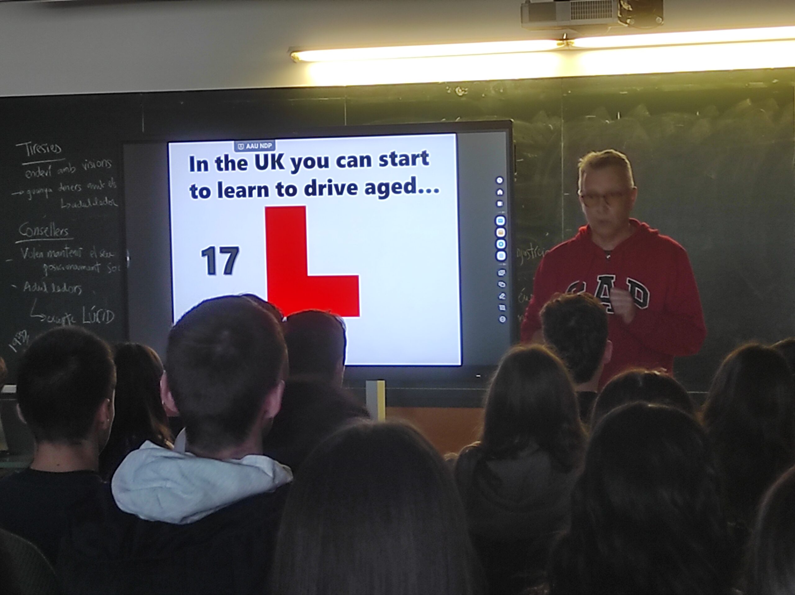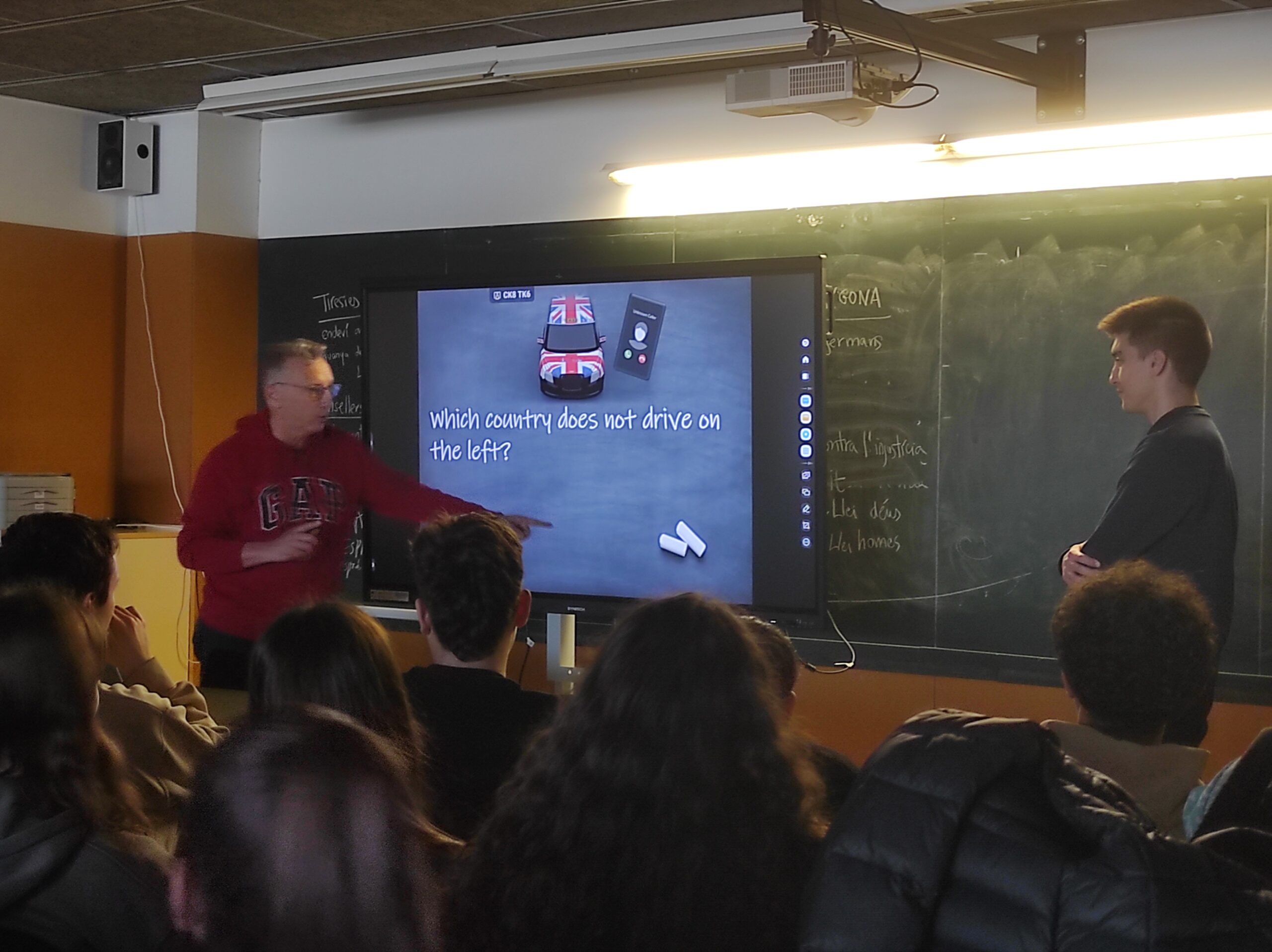 Aquest matí, l’alumnat de 1r de batxillerat ha gaudit d’una divertidíssima sessió en anglès d’introducció a la cultura britànica gràcies a l’editorial Burlington. Han après quin és l’origen de la bandera del Regne Unit, per què allà es condueix per l’esquerra, que els escocesos no porten faldilla, algunes curiositats del metro de Londres i fins i tot han parlat amb la mare del ponent!