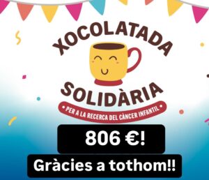 Com ja sabeu el passat divendres 28 de febrer es va celebrar al centre la Xocolatada Solidària que organitza l’Hospital Sant Joan de Déu per tal de recaptar diners per la investigació del càncer infantil.