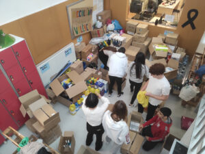 El punt de recollida de l’institut estarà actiu fins demà divendres dia 8. A les 8.30 la donarem per finalitzada, acabarem d’empaquetar durant el matí i a les 12.30 arribarà la brigada per recollir-ho tot.