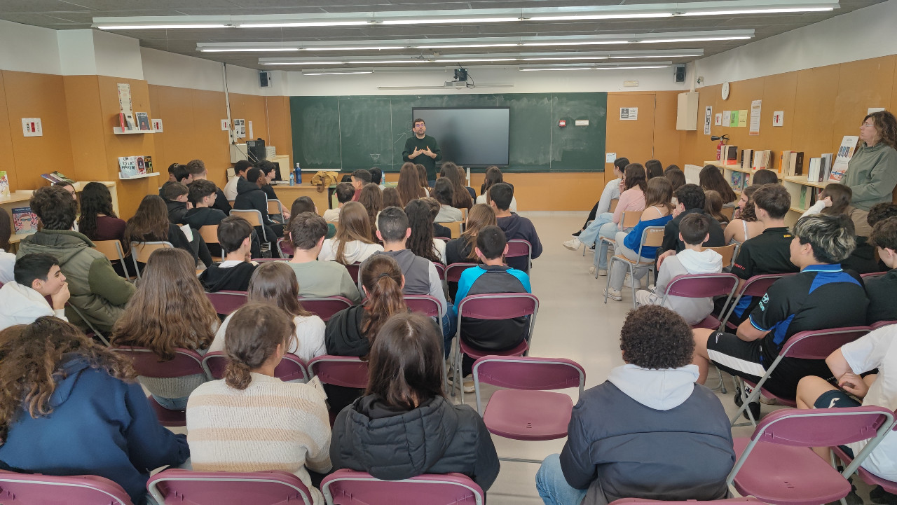 El passat 4 d’abril vam tenir l’honor de rebre la visita del Marc Artigau, prolífic escriptor en tots els gèneres a més a més de col·laborador de programes de televisió i ràdio, autor d’obres com la premiada novel·la La vigília, de l’any 2019, o del poemari Escuma negra, del 2017, que també va ser guardonat.