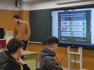 Una altra visita que ens ha encantat és la del nostre ex-alumne Santi Cano, doctorand a la UAB, que va venir per explicar a tot l’alumnat de 1r de batxillerat quins graus s’oferten a la UAB, com s’hi accedeix i com funciona la vida al campus. Una xerrada molt il·lustrativa i motivadora.