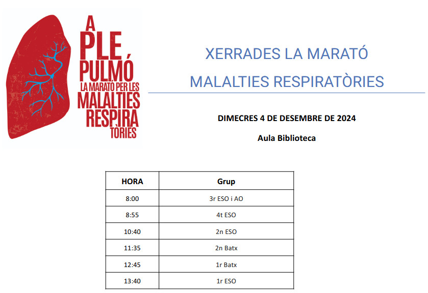 Dimecres 13 de desembre es portaran a terme a l’Institut les xerrades divulgatives sobre La Marató, que aquest any està dedicada a la salut sexual i reproductiva (SSIR). L’objectiu és acostar els joves a aquesta temàtica, que, segons els professionals de la salut, engloba… Llegeix més»