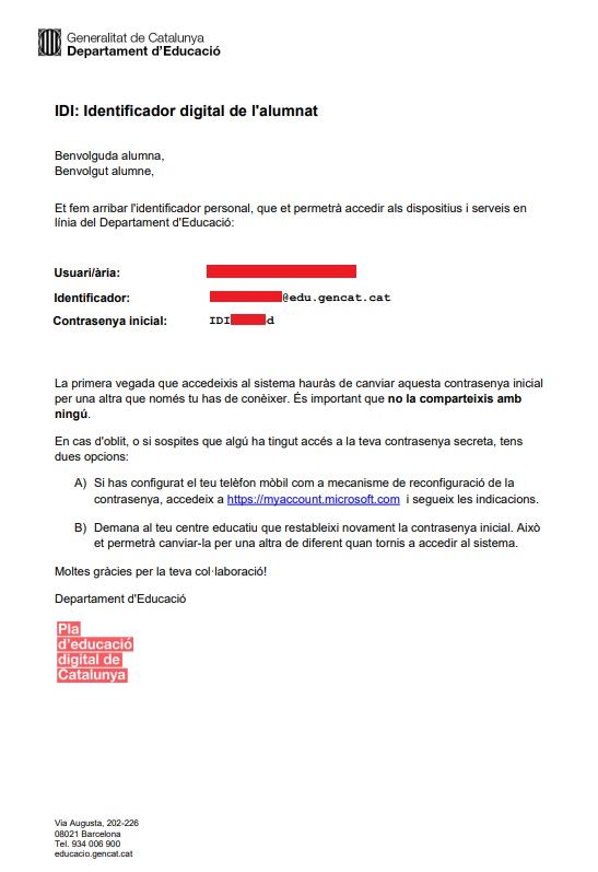 En cas de pèrdua o desconeixement del IDI, caldrà obrir una incidència.