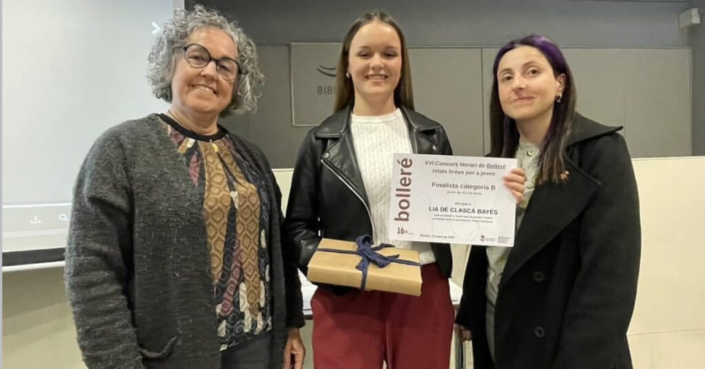 El passat dimecres al vespre es va fer el lliurament dels premis de la setzena edició dels Bolleré, el concurs literari de relats breus per a joves d’entre 12 i 25 anys convocat per l’Ajuntament de Blanes. D’entre les premiades, volem felicitar especialment la nostra alumna Lia DeClascà, que amb el relat “L’home que va perdre l’ombra” va quedar finalista de la categoria B. La Lia estudia 1r de batxillerat social al Serrallarga, escrivia de petita i ara hi ha tornat, així que aquest premi li fa molta il•lusió.