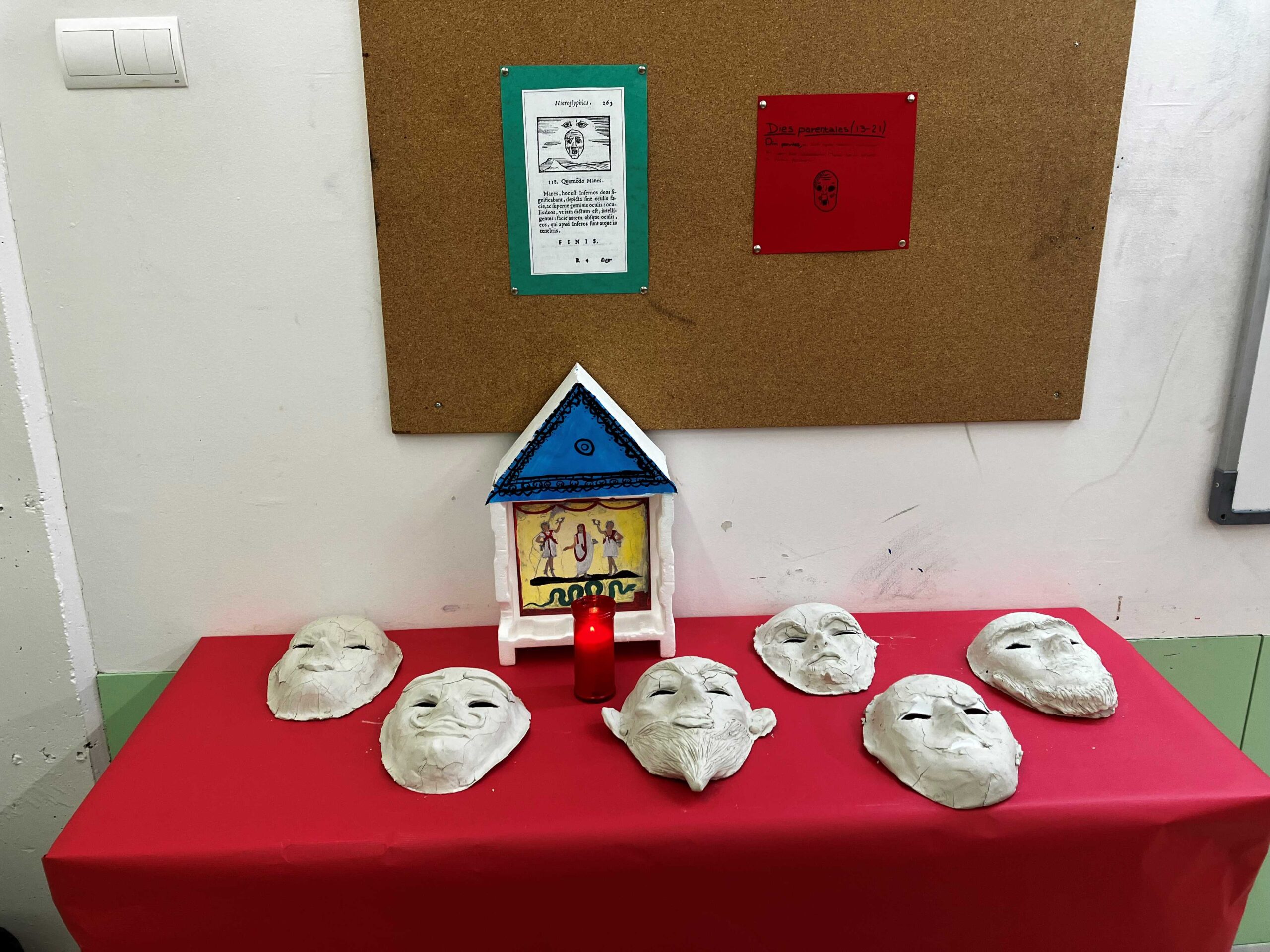 Aquests dies a la classe de Llatí de 1r de Batxillerat celebrem les Parentalia, festa romana que durava del 13 al 21 de febrer. Hem fet un taller en el qual hem fabricat imatges dels Manes, els esperits dels avantpassats, com les que tenien els patricis als atris de les seves cases. Un cop fetes, les hem posat al costat del larari, l’altar dels déus lars. Es poden veure a l’aula 117.