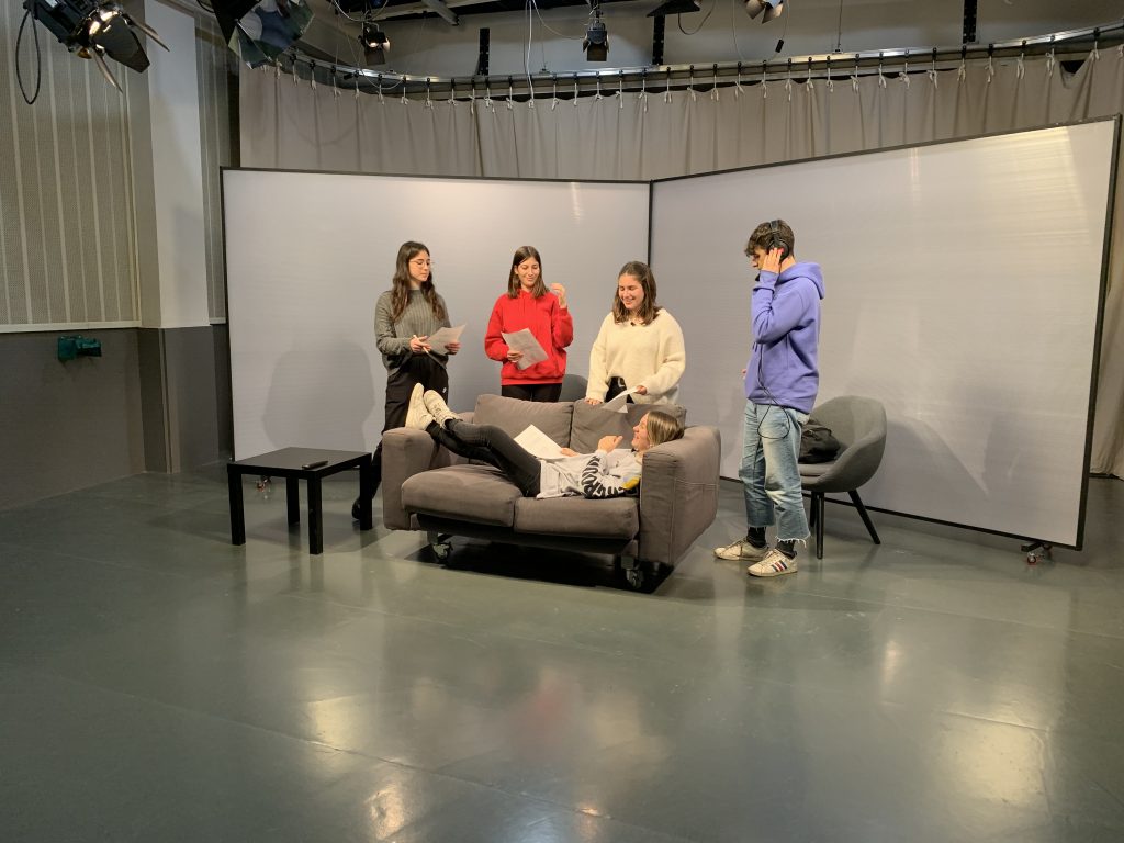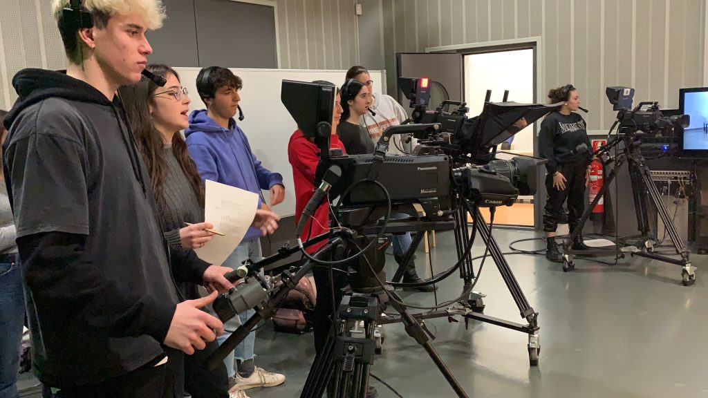 Aquest matí els alumnes de 1r i 2n de Batxillerat Artístic que cursen Cultura Audiovisual han visitat la Universitat de Vic per realitzar dos tallers pràctics molt interessants, un de TV i un altre de ràdio.