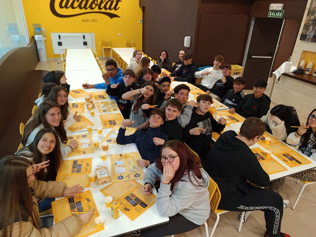 La segona part de la sortida s’ha situat en la visita a la fàbrica Cacaolat on han conegut un exemple de la indústria en el nostre territori. També han après, de manera interactiva, el procés d’elaboració dels productes, la procedència de les matèries primeres, la història de l’empresa, les campanyes publicitàries… En finalitzar la visita han gaudit d’un tastet del seu producte i d’un obsequi que ens han lliurat.