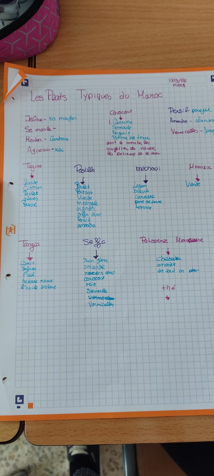Durant la sessió, els alumnes van descobrir plats típics del Marroc, ingredients, tradicions culinàries i curiositats culturals, tot en llengua francesa.