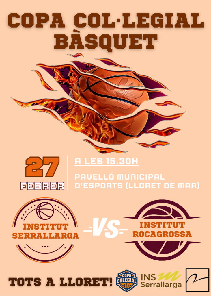 Aquest 27 de febrer a les 15.30h no et perdis el partit de la Copa Col·legial de bàsquet entre el Serrallarga i el Rocagrossa al pavelló del Molí de Lloret de Mar.