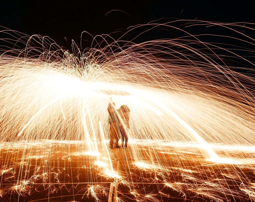 Es va fer una pràctica a l’última hora de la jornada per veure l’efecte de la llum en moviment en un espai fosc.