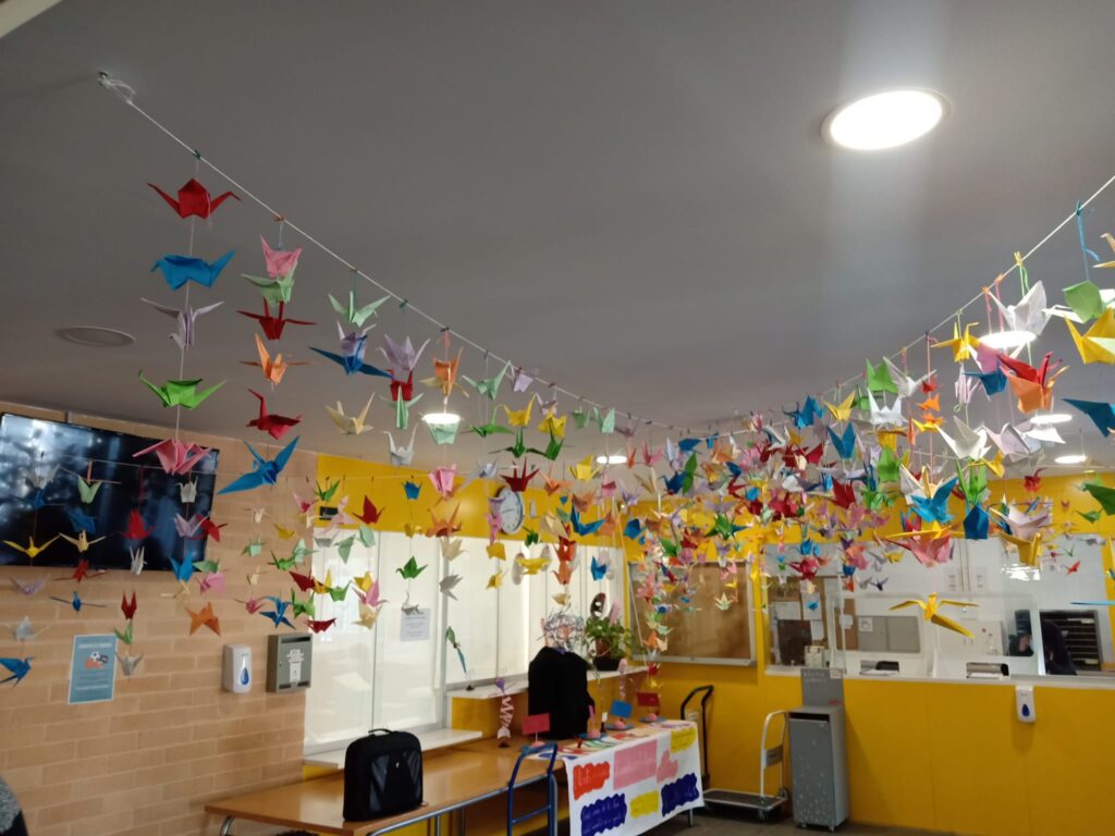 Aquests dies el nostre alumnat ha participat en la campanya solidària 1origami1euro que consisteix en què la Fundació Mutua General de Catalunya donarà 1 euro per cada origami recollit (grua de paper) a la causa que escollim nosaltres (a la Marató de TV3, ONCOLLIGA o a la Fundació Enriqueta Villavecchia).