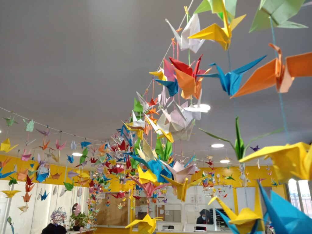 Aquests dies el nostre alumnat ha participat en la campanya solidària 1origami1euro que consisteix en què la Fundació Mutua General de Catalunya donarà 1 euro per cada origami recollit (grua de paper) a la causa que escollim nosaltres (a la Marató de TV3, ONCOLLIGA o a la Fundació Enriqueta Villavecchia).