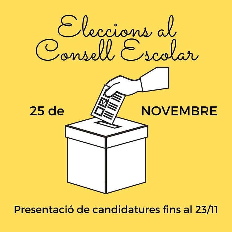 *Presentació de candidatures: podeu passar per la recepció del centre i des de la pàgina web del centre , a partir del dia 5 de novembre, i recollir el model de candidatura per a les eleccions. Es poden presentar candidatures fins el dia 25 de novembre.