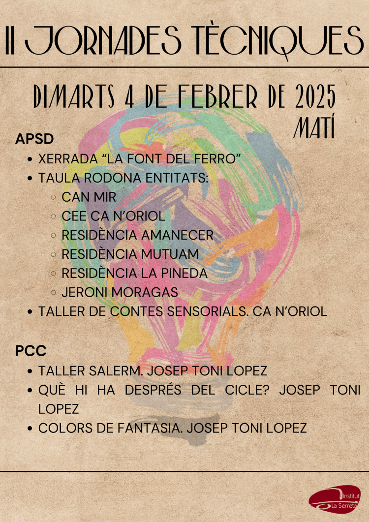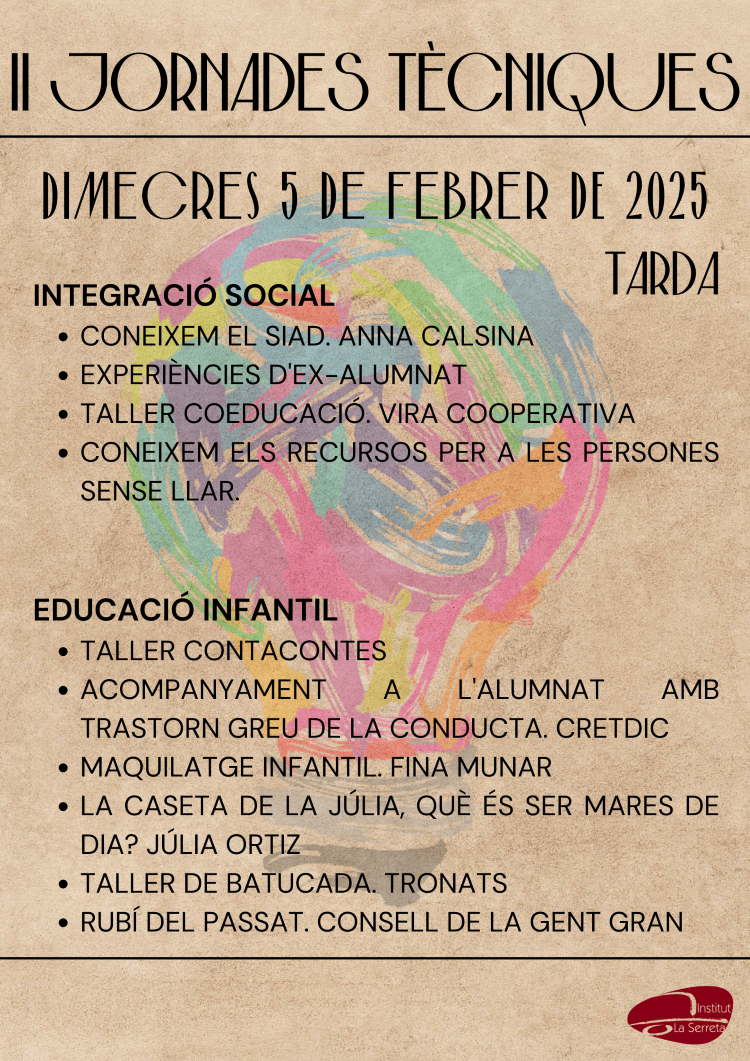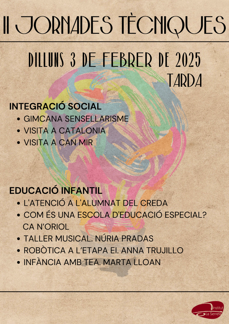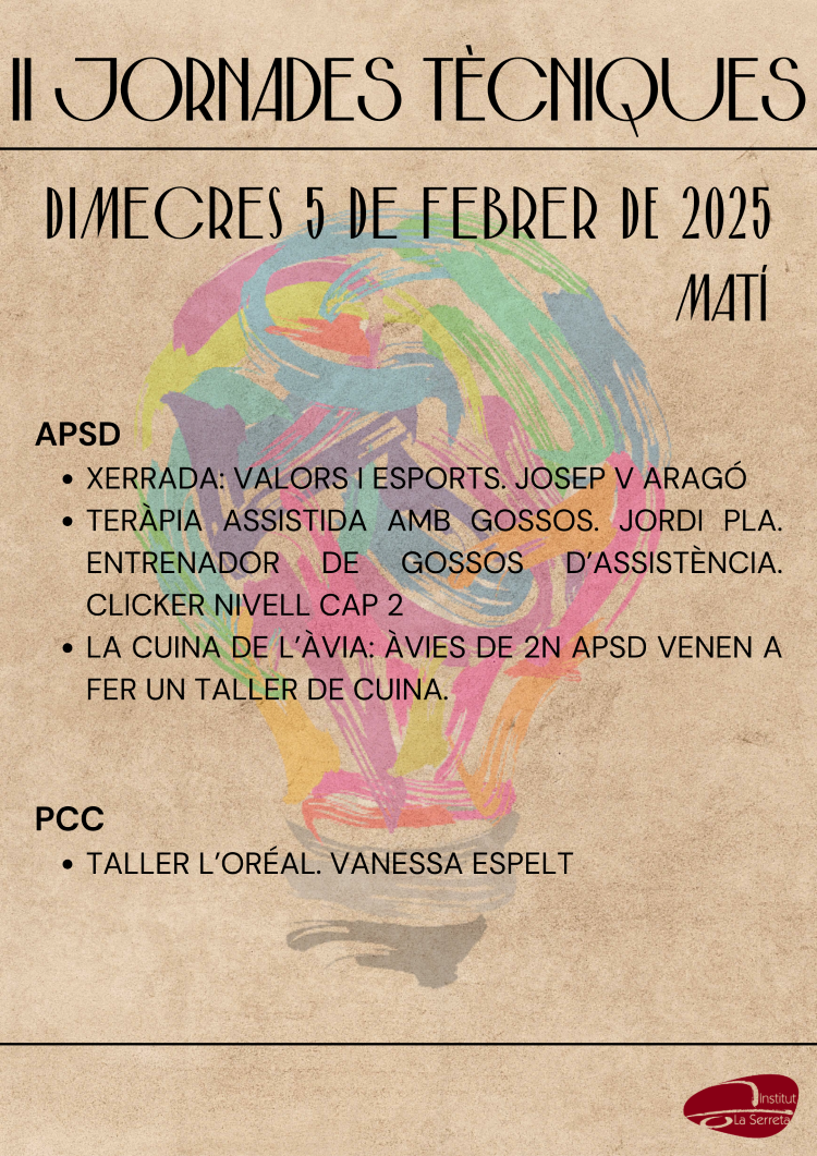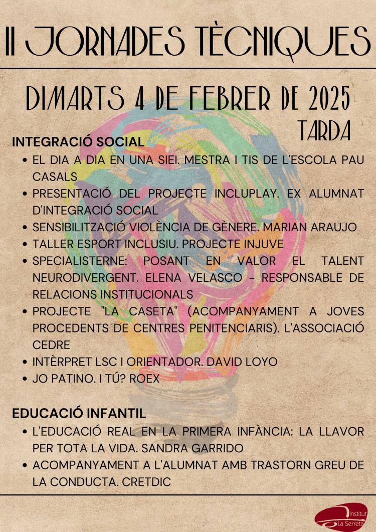 II Jornades Tècniques Institut La Serrreta02/02/25 Aquesta setmana tenen inici les II Jornades Tècniques amb la següent programació: